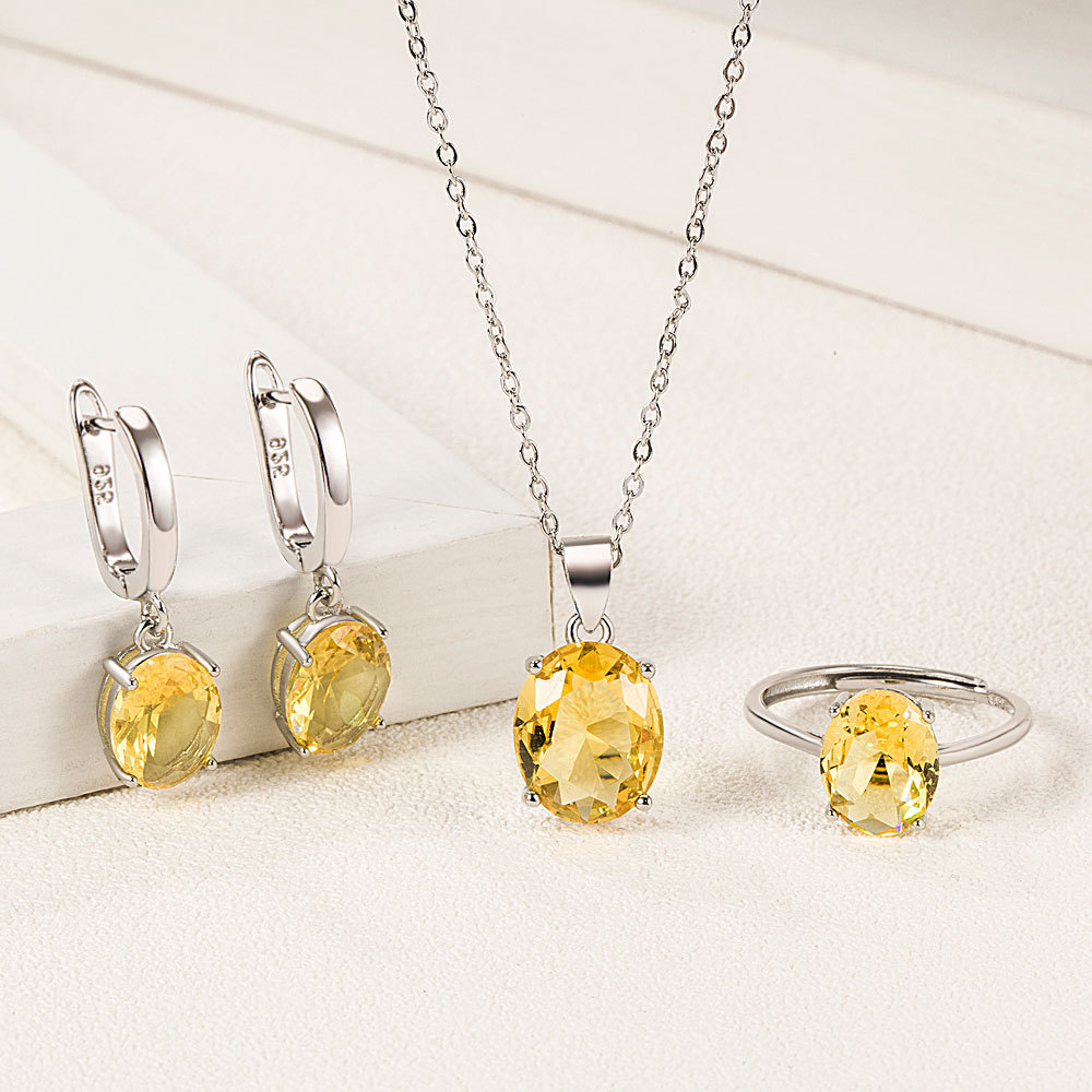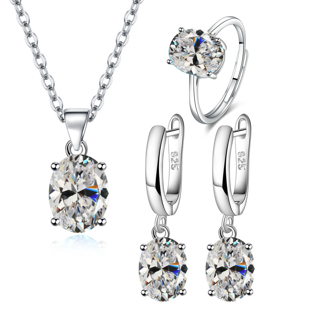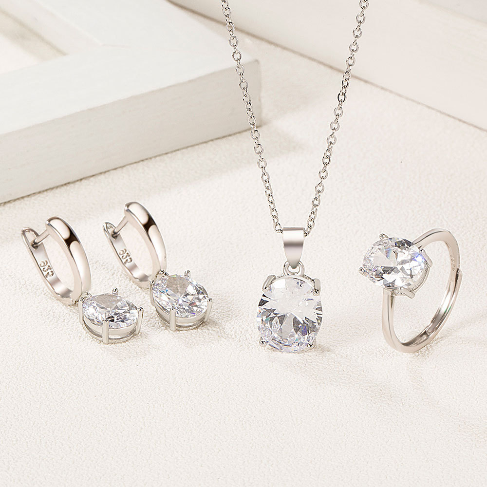 Color: red diamond (pendant necklace+ring+ear buckle) set (copper plated white gold) M67/M89/M111, white diamond (pendant necklace+ring+ear buckle) set (copper plated white gold) M69/M91/M113, blue diamond (pendant necklace+ring+ear buckle) set (copper plated white gold)