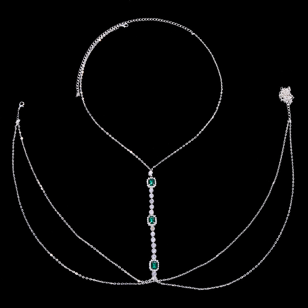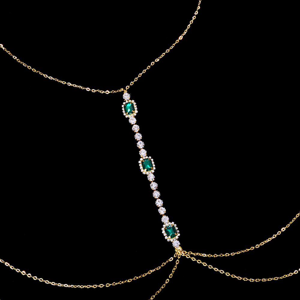 Fashion Emerald Rhinestone Body Chest Chain