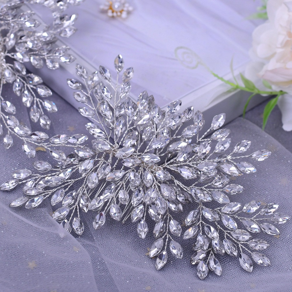 Product information:Material: RhinestoneStyle: Women'sColor: silver, gold, rose goldSize: 29x10cmPacking list:Headgear*1