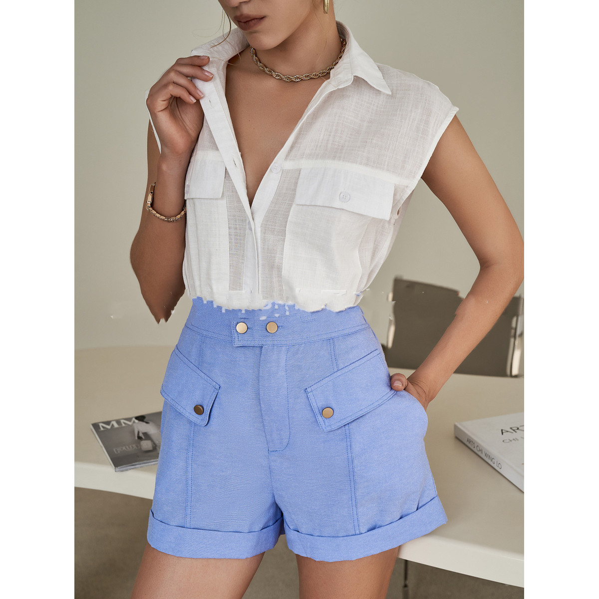 Fashion European And American Style Commuter High Waist Solid Color Beltless Thin Shorts