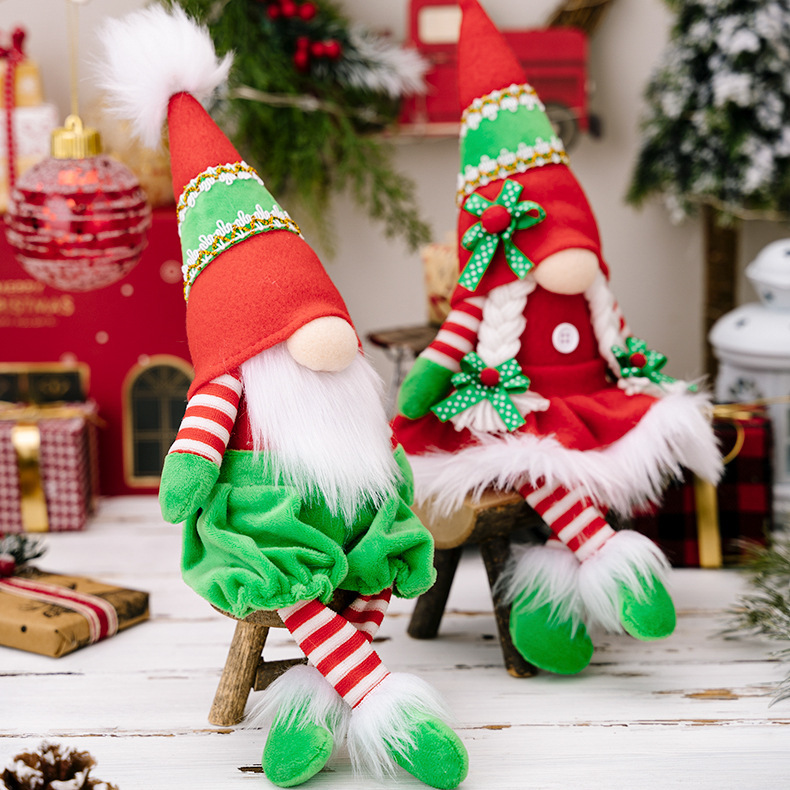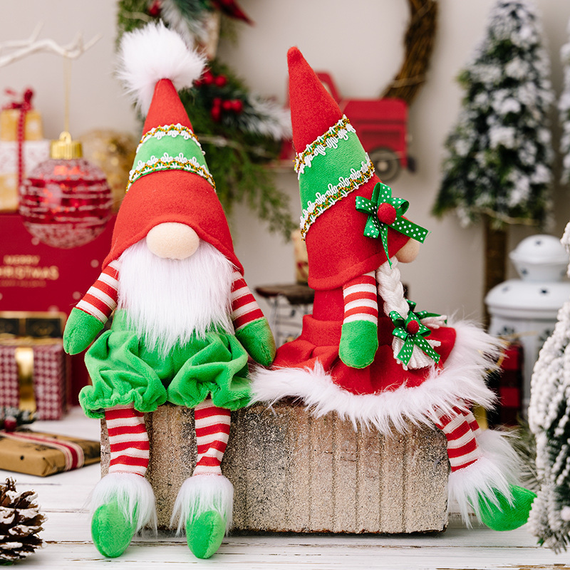 Color: red and green hanging legs pointed hat dwarf male, red and green hanging legs pointed hat dwarf female