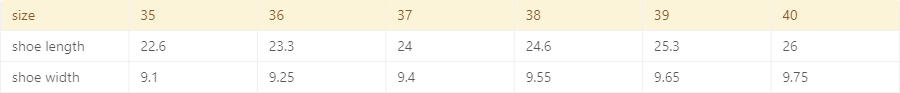 Size: 36, 37, 38, 39, 40
