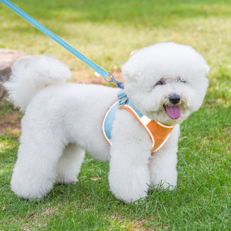 Size: (L*W) xxxs neck circumference 20-25cm chest circumference 25-29 traction rope 150*1.0cm, XXS neck circumference 24-30 cm bust circumference 30-35cm traction rope 150*1.0cm, XS neck circumference 30-35 cm bust circumference 34-40cm drawstring 150*1.0cm, S neck 32-38cm bust 40-45cm drawstring 150*1.0, M neck 36-42cm bust 42-48cm drawstring 150*1.5cm, L neck 36-45 bust 48-53cm leash 150*1.5cm, XL neck 48-58cm bust 58-66cm leash 150*1.5cm