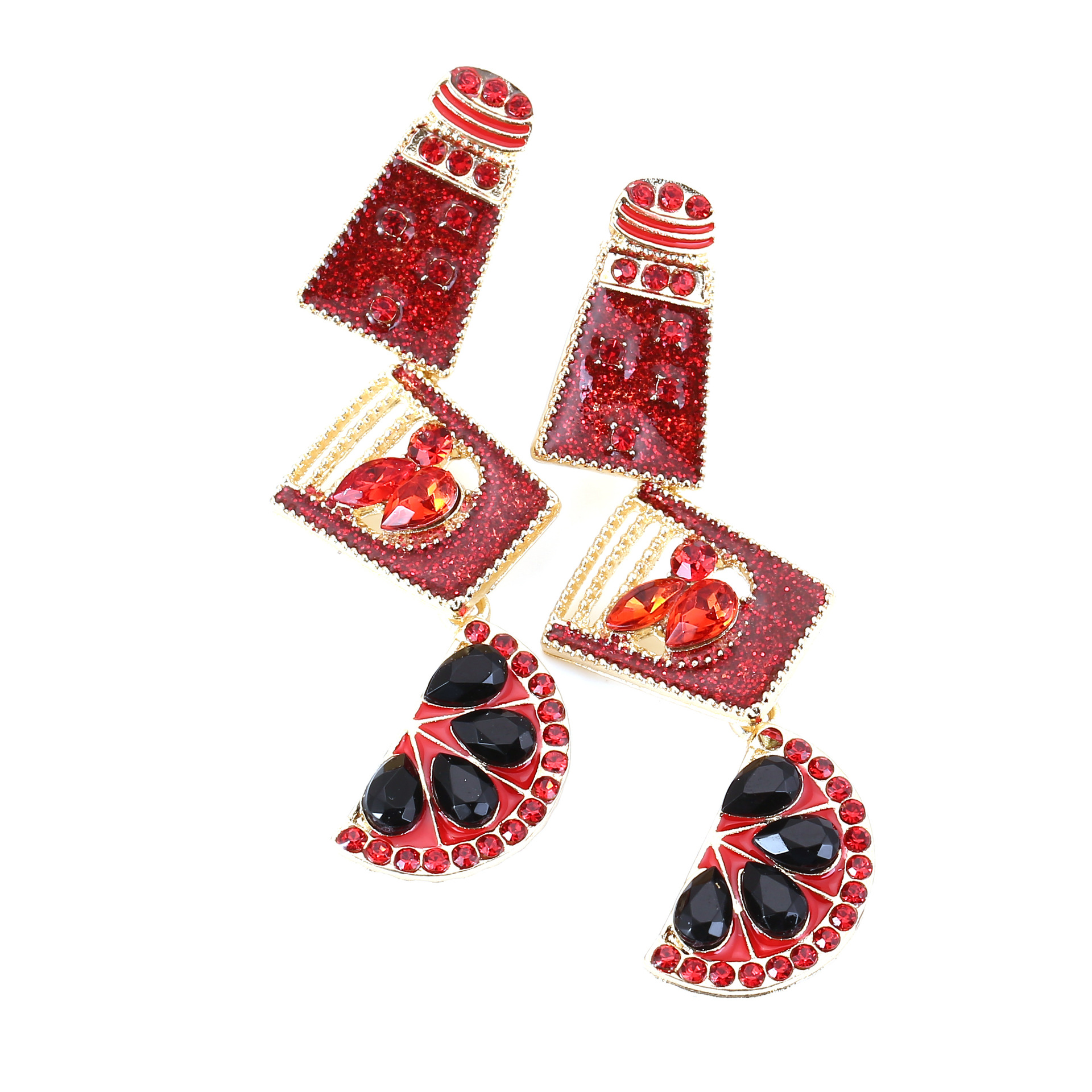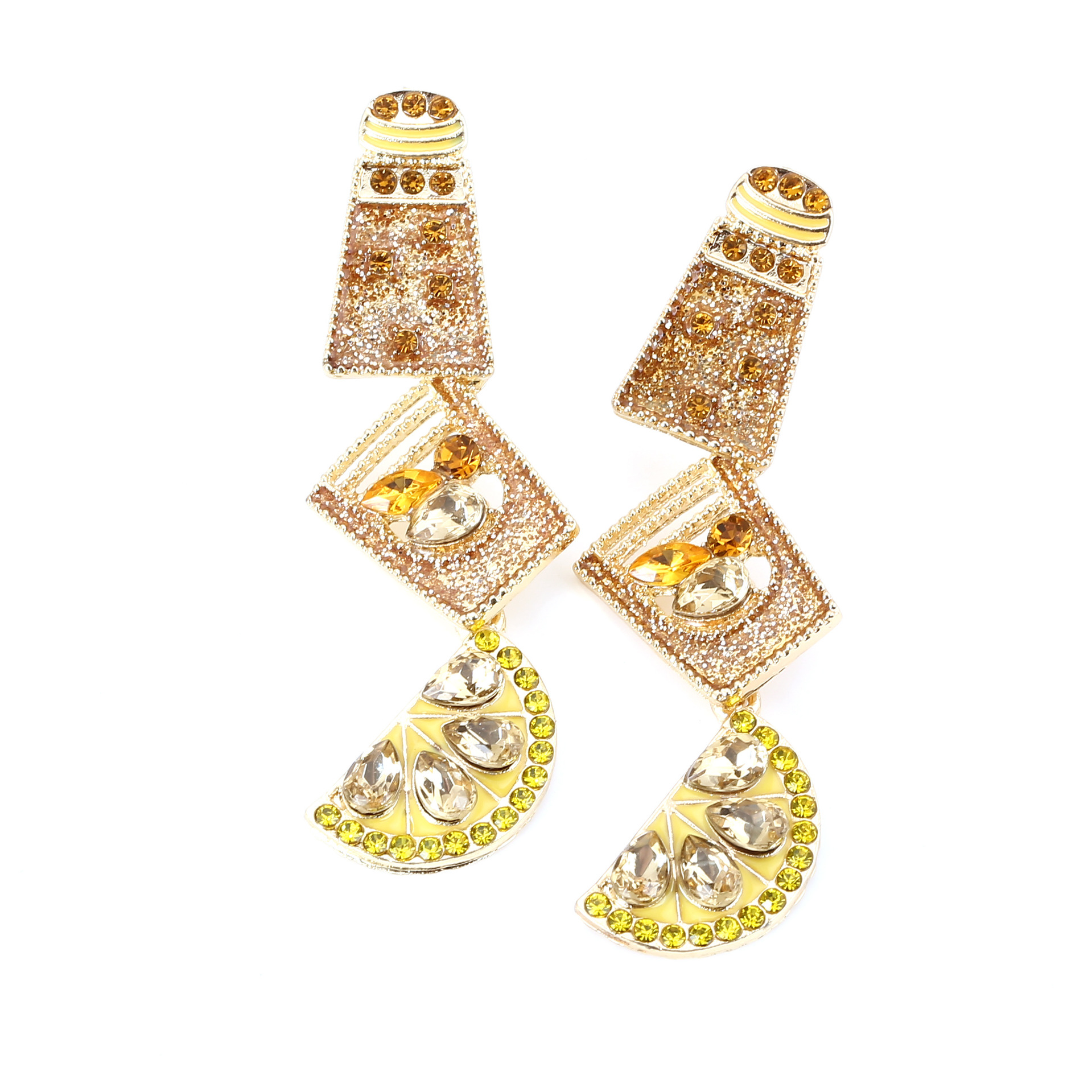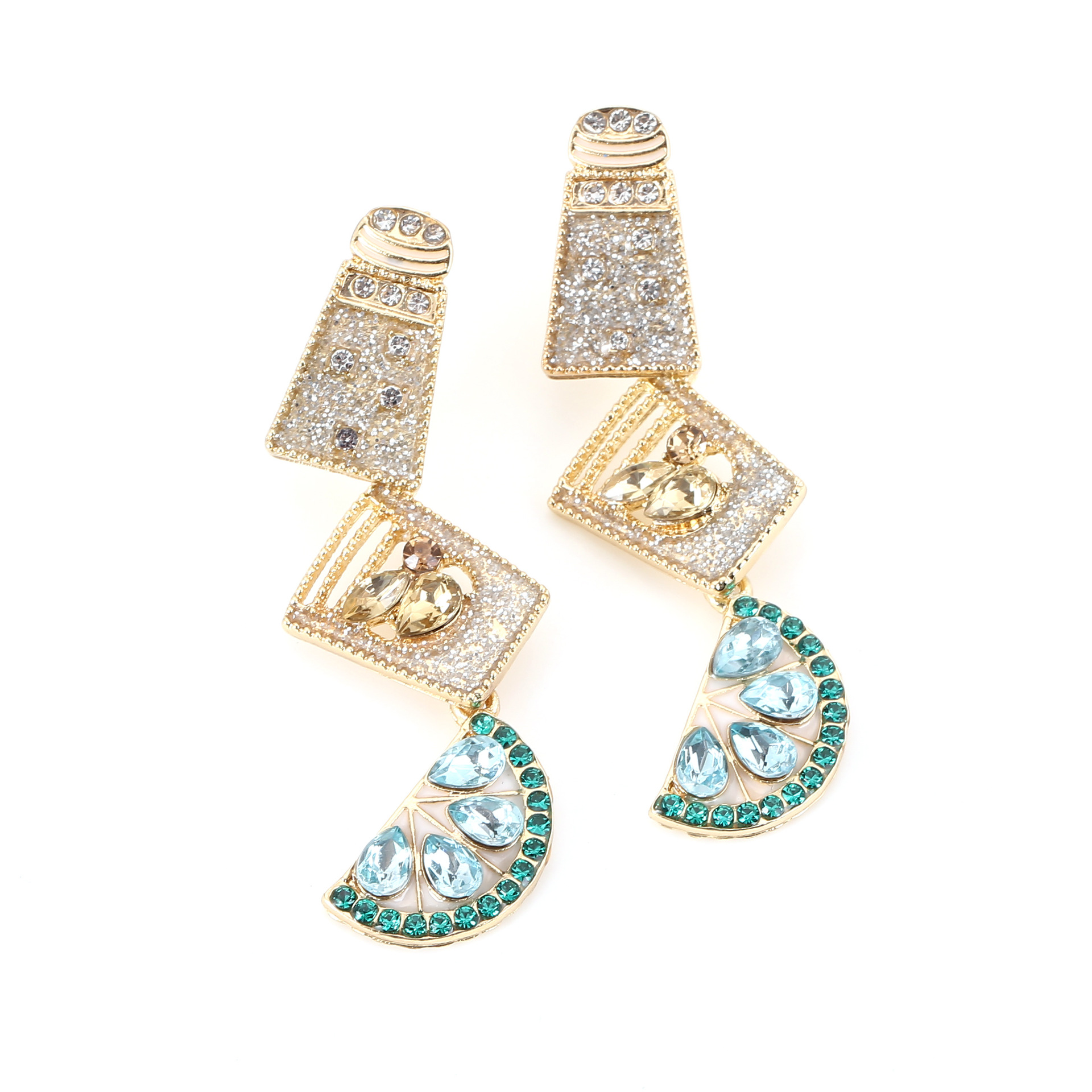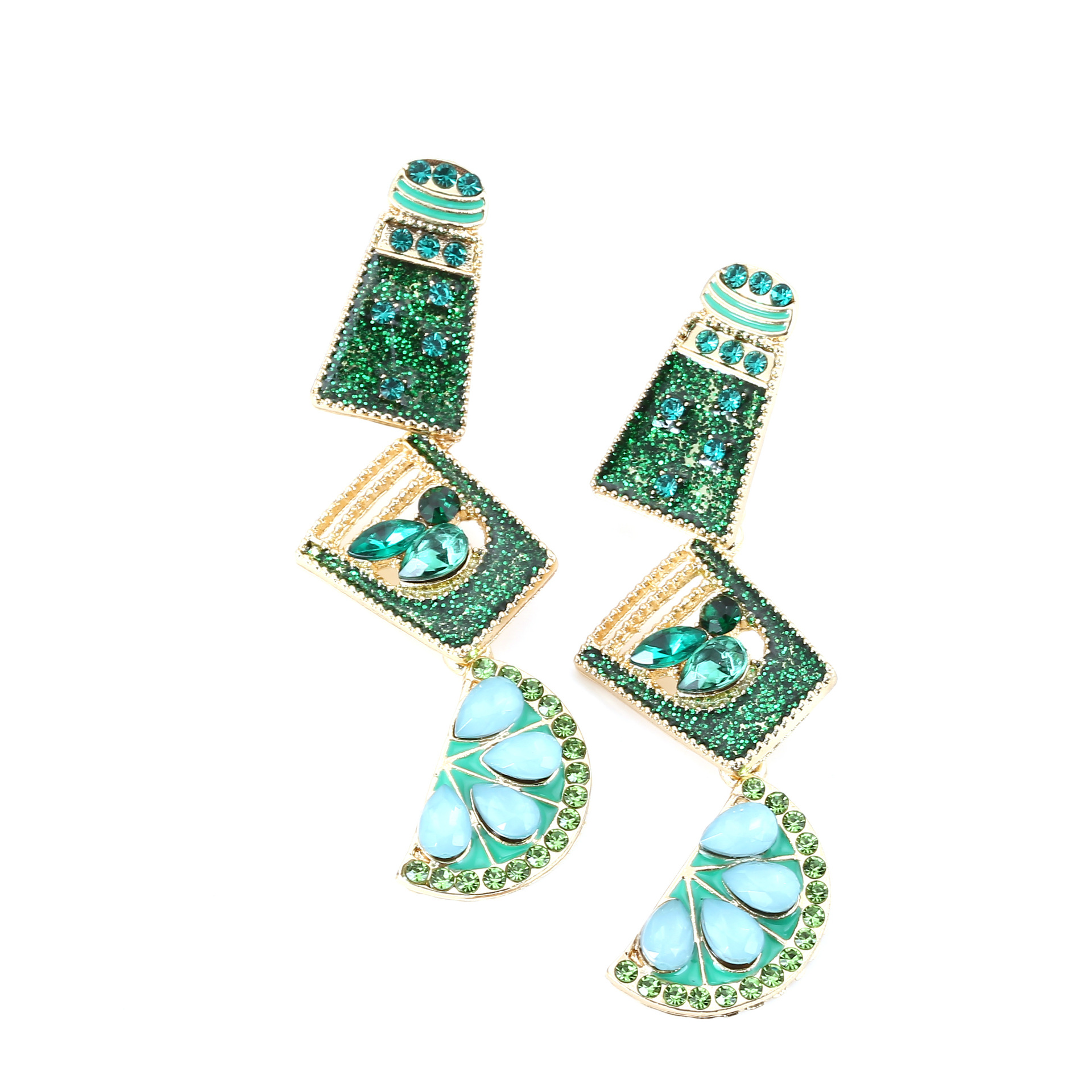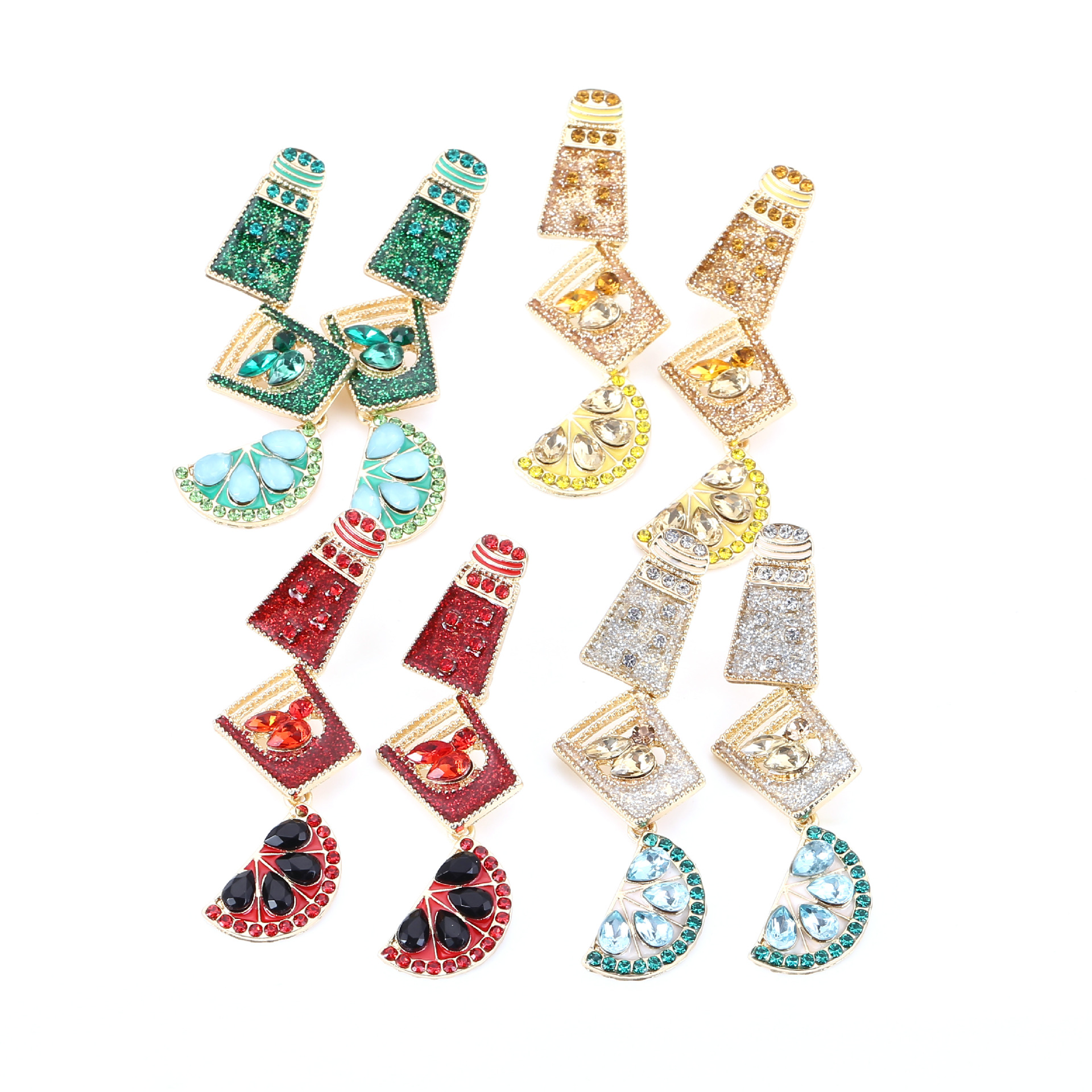 Fashion Geometry Pattern Rhinestone Earrings Creative Multi-layer Stitching Dripping Fruit Cup Ear Studs
