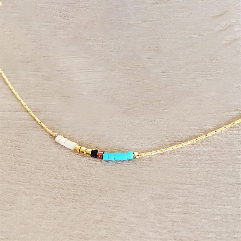 Color: golden chain blue rice beads, golden chain red rice beads, golden chain purple rice beads