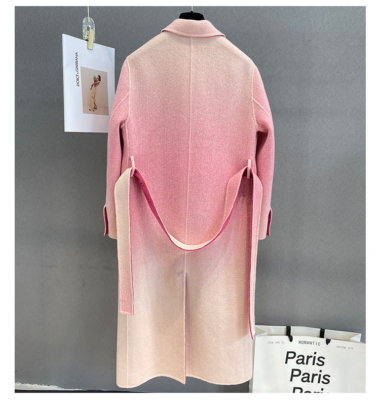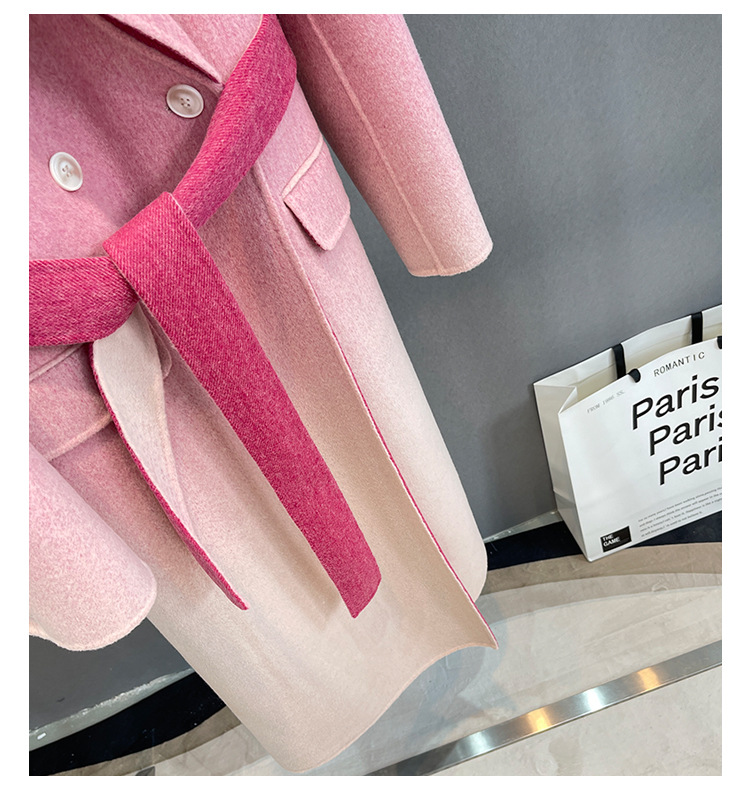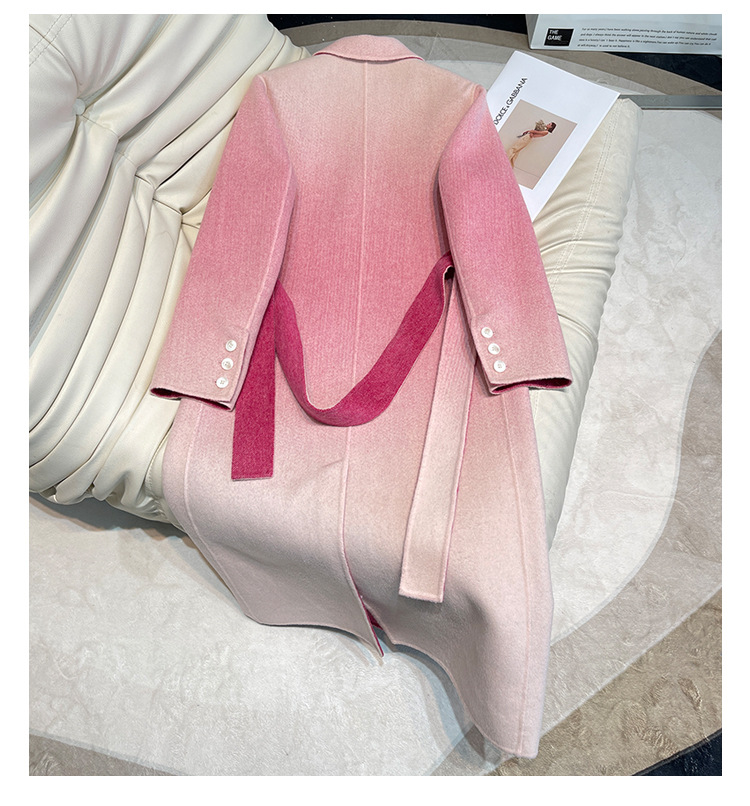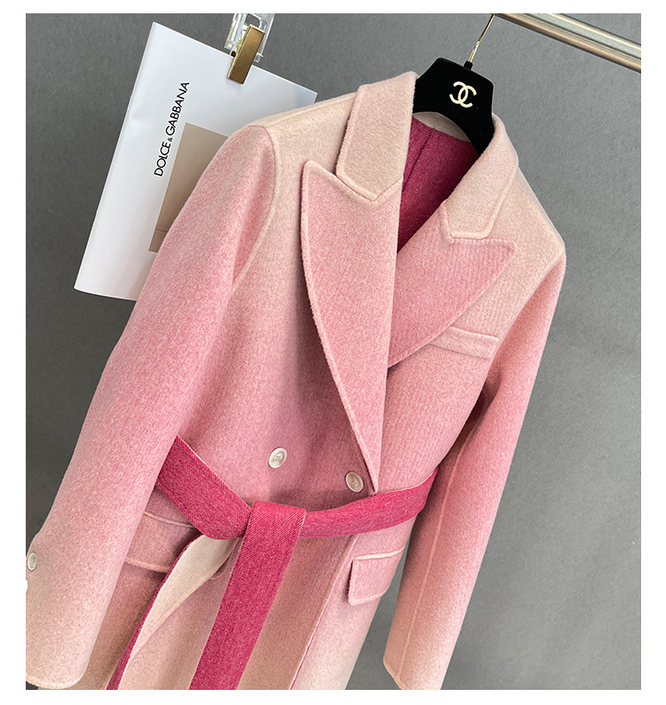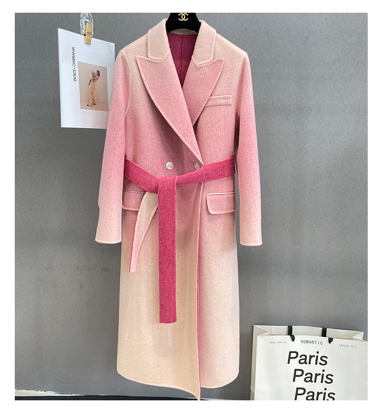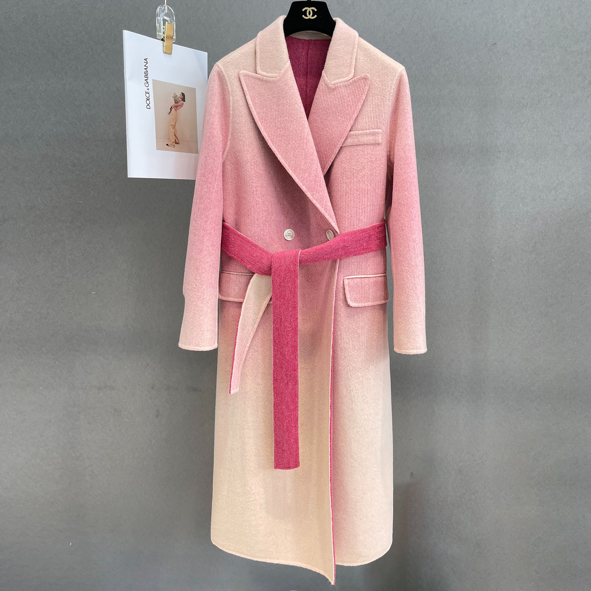 Fashion Gradient Color Belt Slim Slimming Soft And Comfortable Female Wool Overcoat
