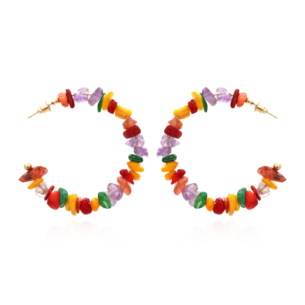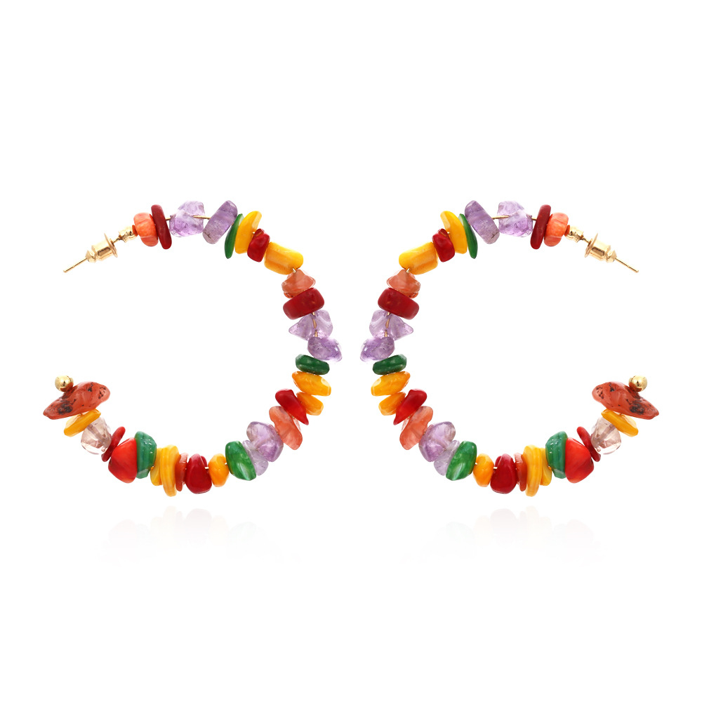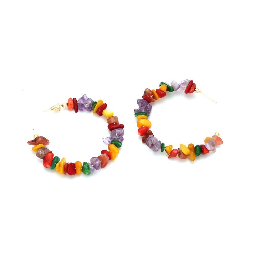 Fashion Handmade Beaded C- Shaped Color Gravel Earrings