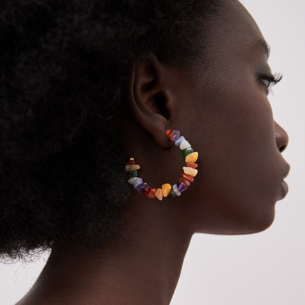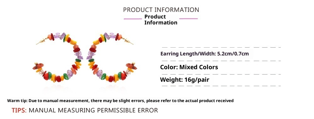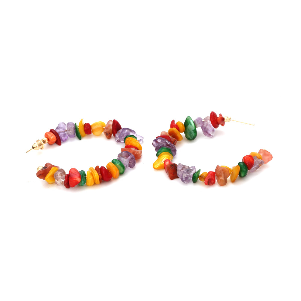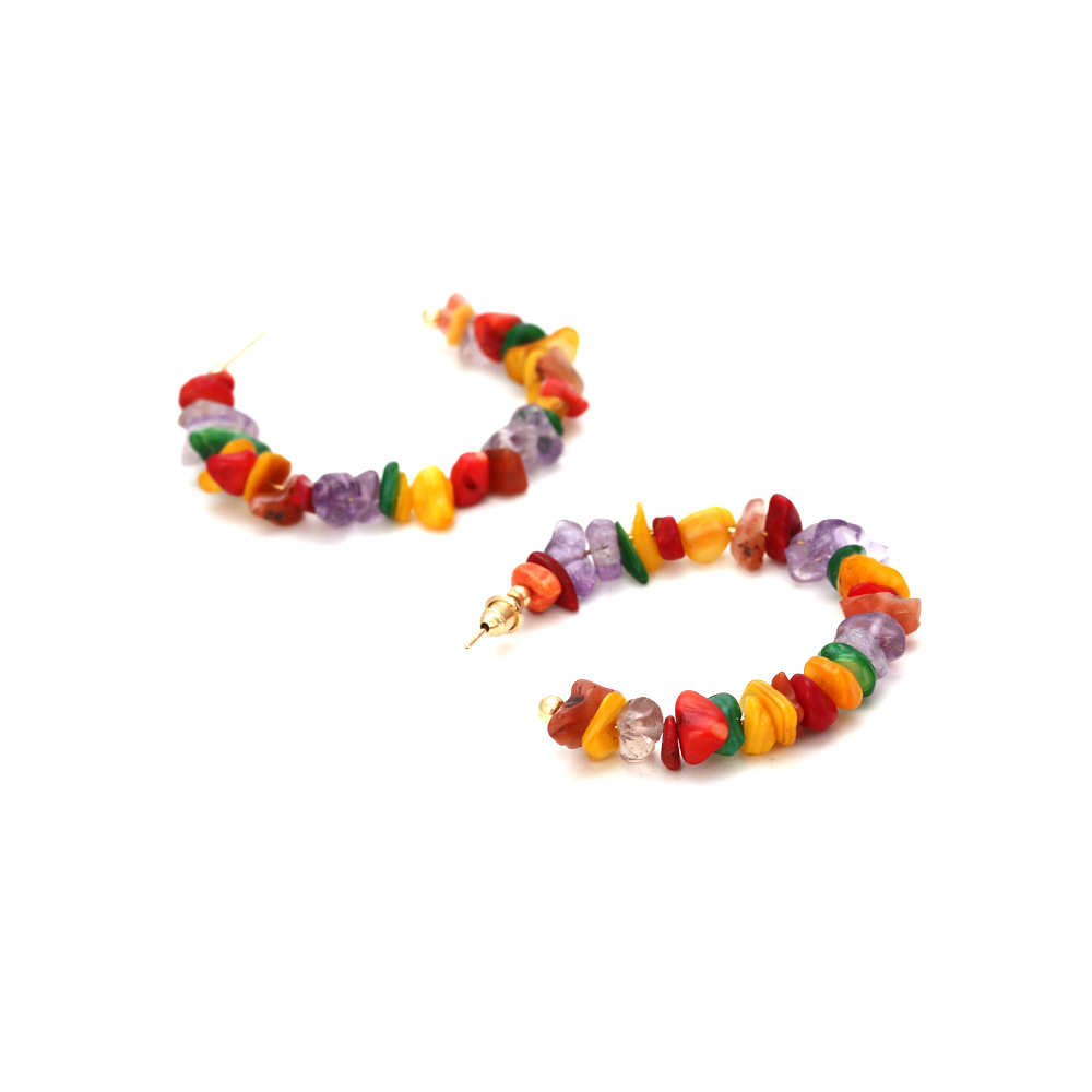 Fashion Handmade Beaded C- Shaped Color Gravel Earrings