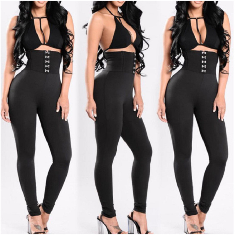 Fashion High Waist Black Color Length Pants Trousers