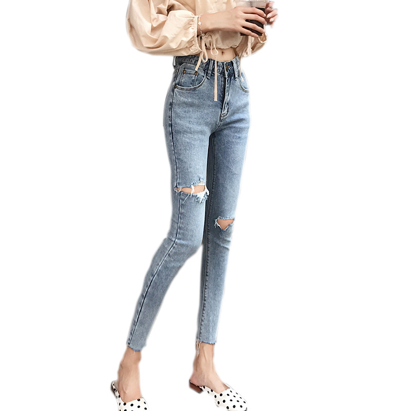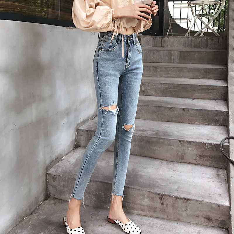 Fashion High-waisted Elastic Pierced Small Feet Retro Hong Kong-style Cropped Trousers