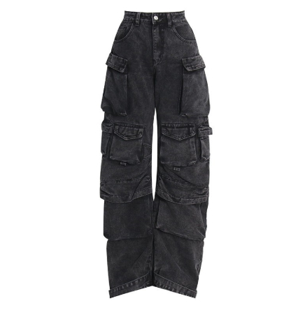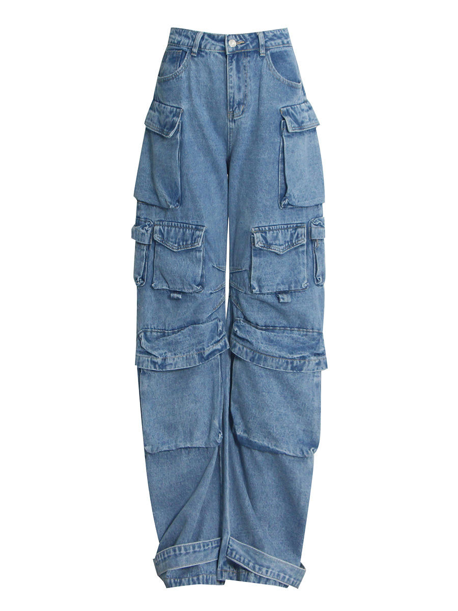 Fashion High-waisted Personalized Stitching Denim Trousers