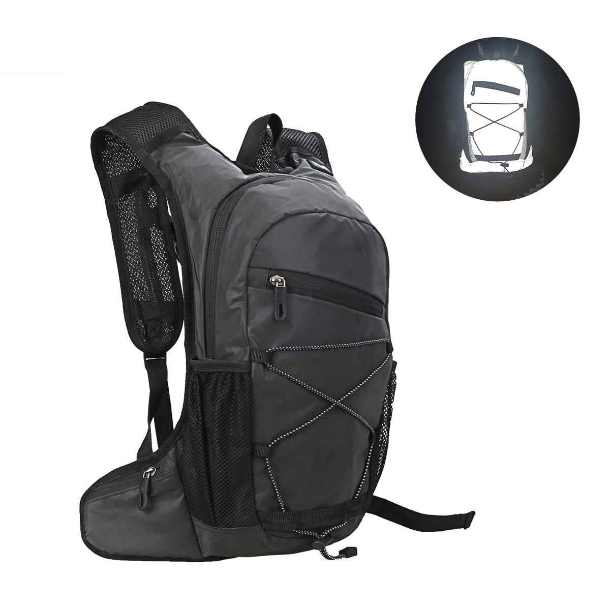 The whole package fabric is reflective fabric, which increases the safety of night travel,