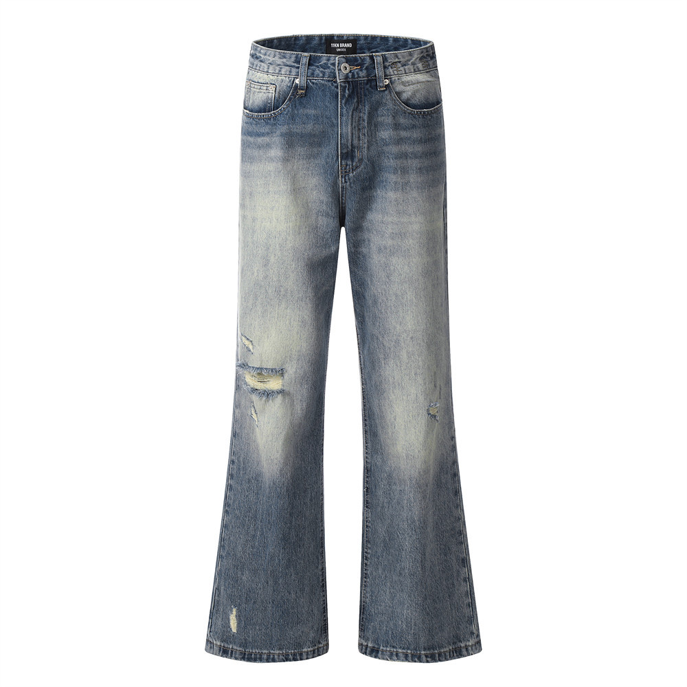 Fashion Holes Denim Men's Bootcut Pants