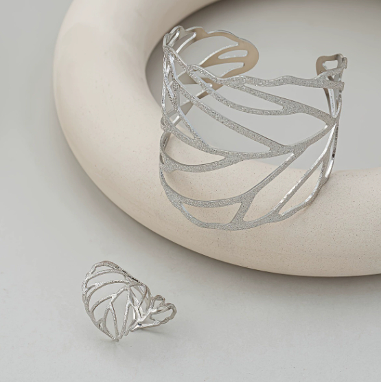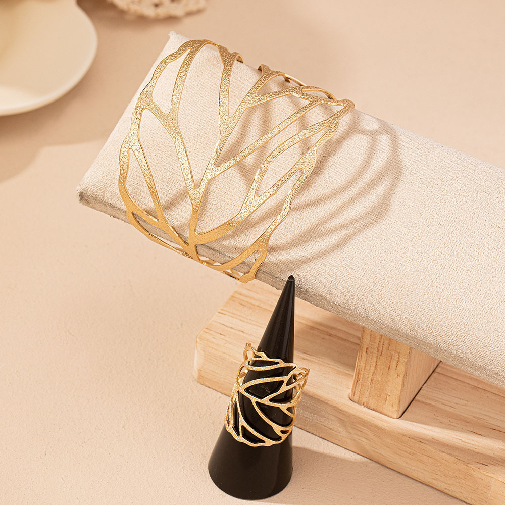 Fashion Hollowed-out Leaves Ring Bracelet Suit