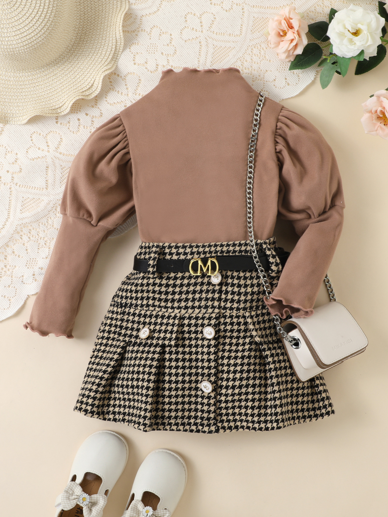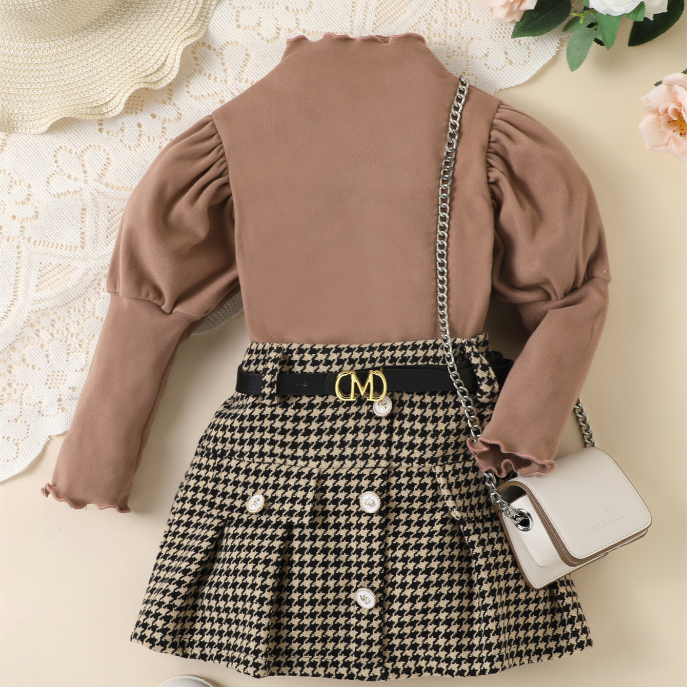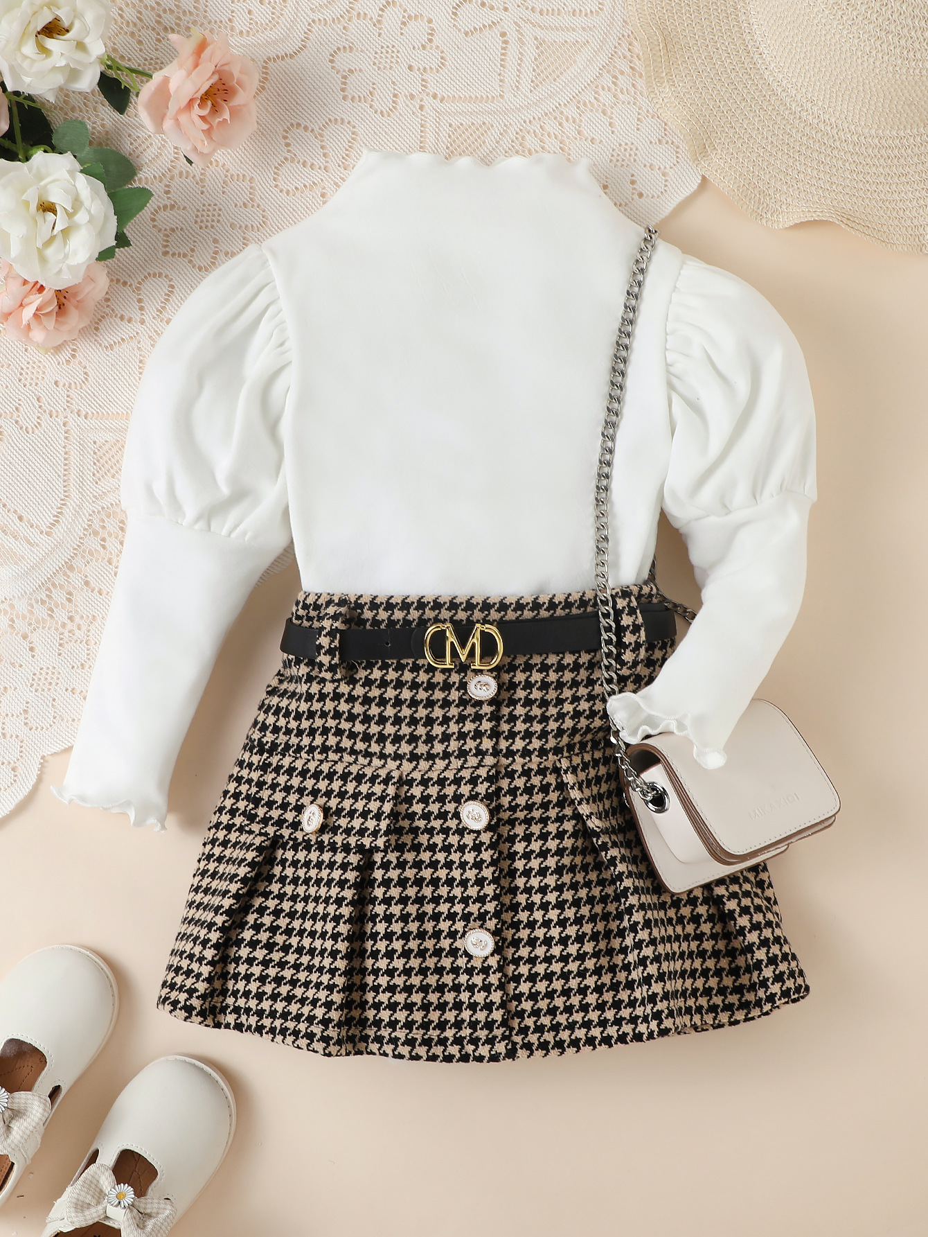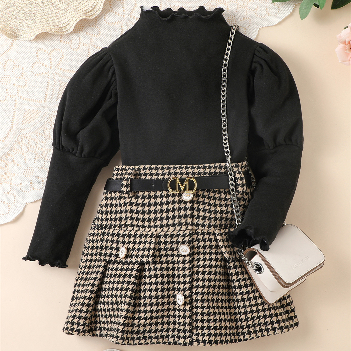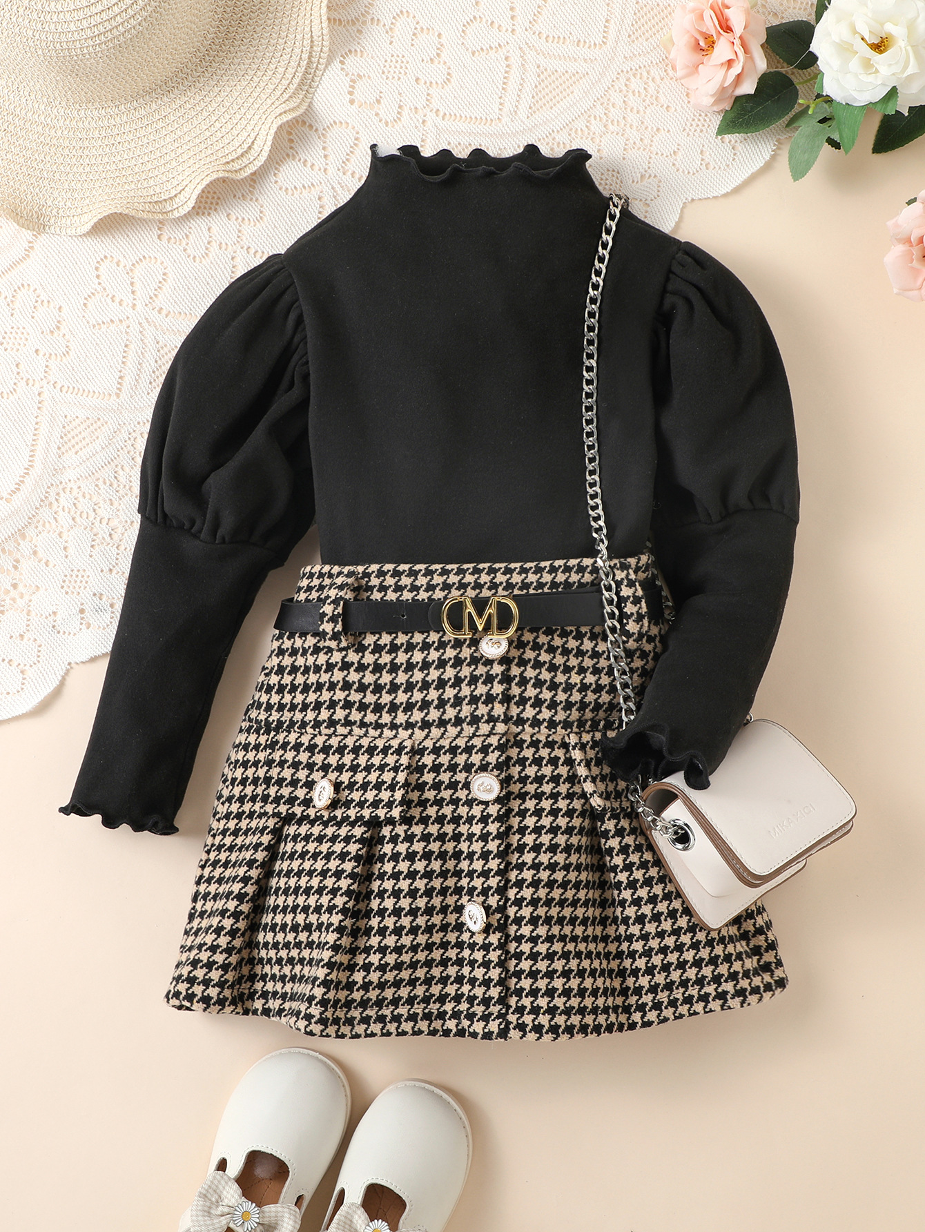 Fashion Houndstooth With Belt Skirt