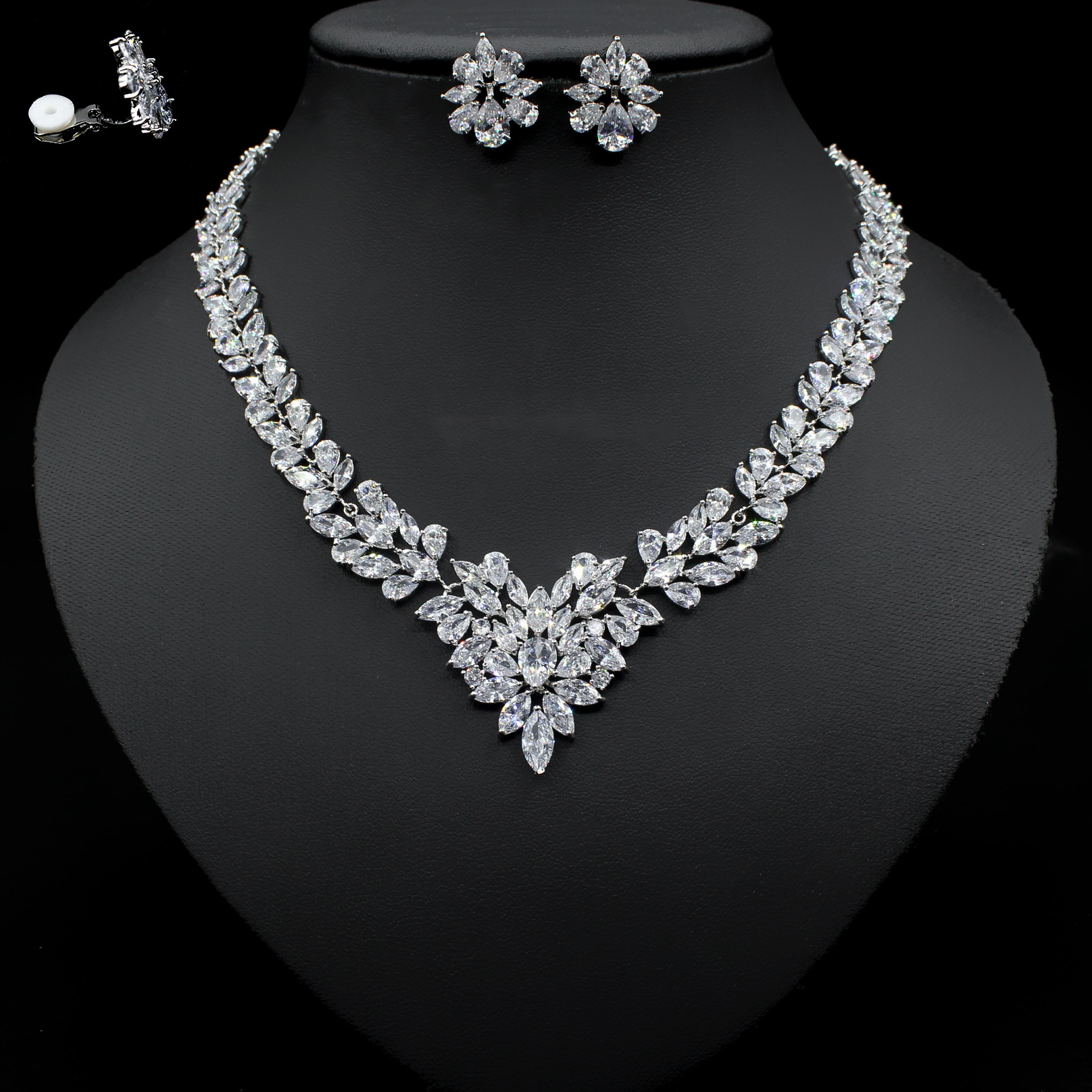 Color: white zirconium platinum suit, rose red platinum suit, royal blue platinum suit, green platinum suit, white zirconium platinum ear clip suit, color zirconium platinum suit