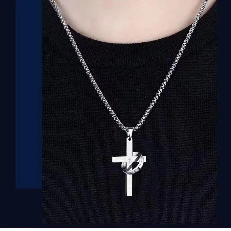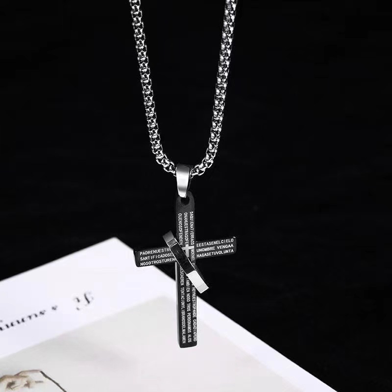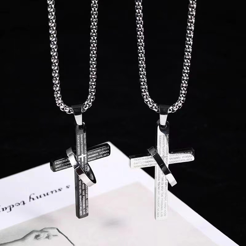 Color: Cross Scripture Ring (Black) - Titanium Steel Chain 60cm, Cross Scripture Ring (Black) - Titanium Steel Chain 70cm, Cross Scripture Ring (Silver) - Titanium Steel Chain 60cm, Cross Scripture Ring (Silver) - Titanium Steel Chain 70cm