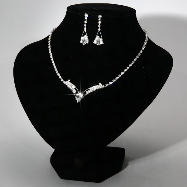 Fashion Korean water drop, bride necklace, earring set, silver plated wedding jewelry 2 sets