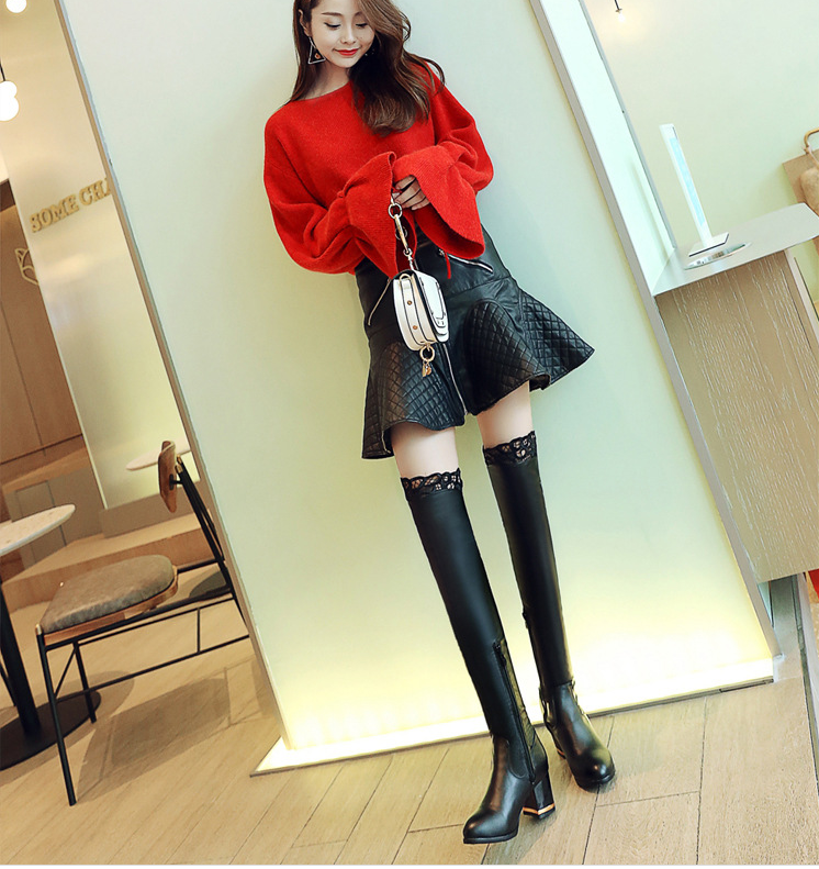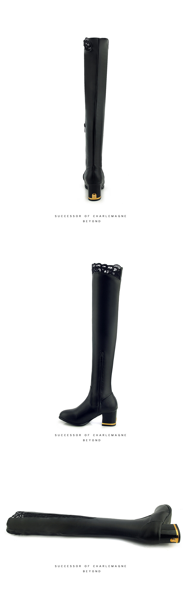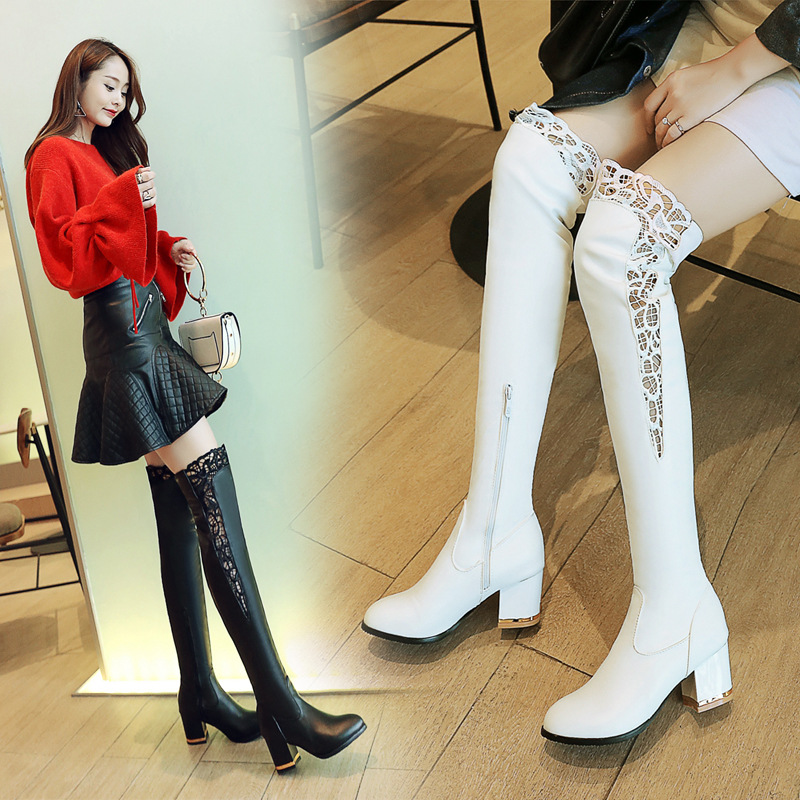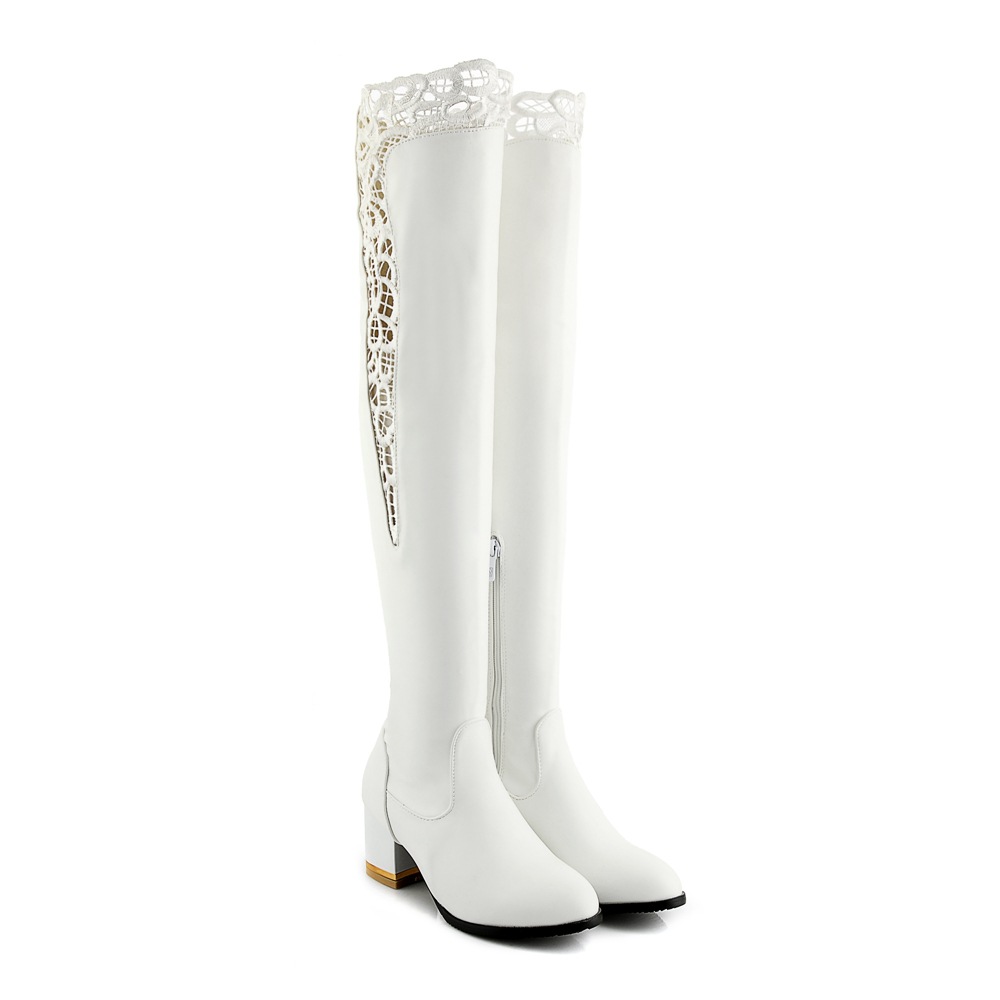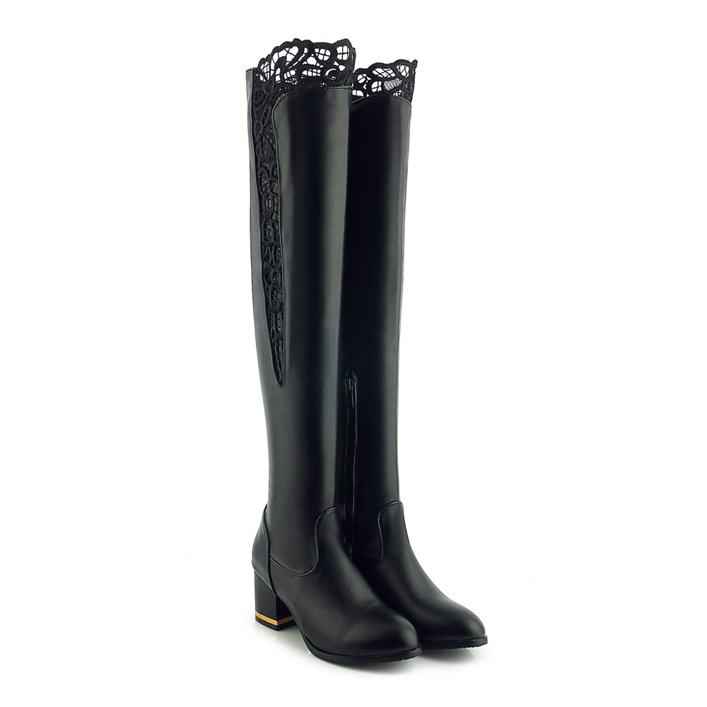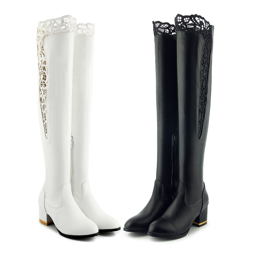 Fashion Lace Hollow Thick Heel Over-the-knee Boots