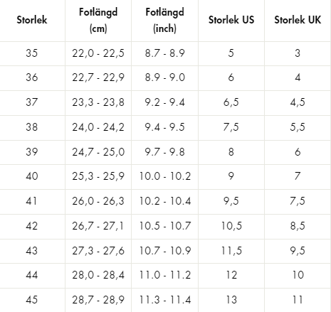 Sizes 35, 36, 37, 38, 39, 40