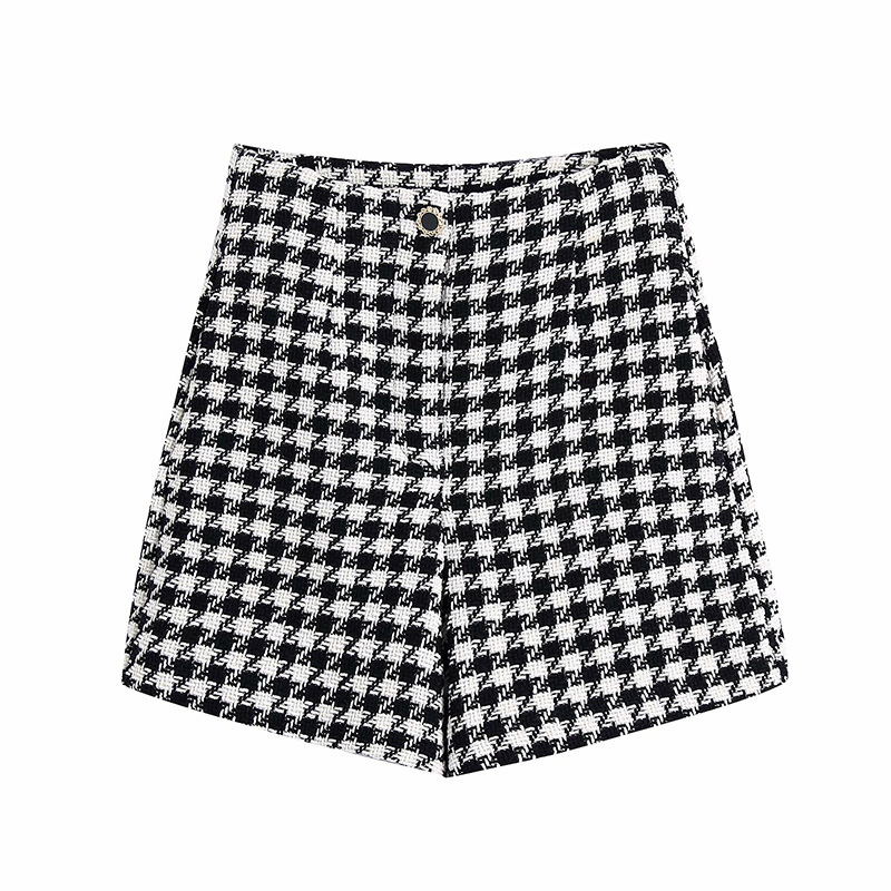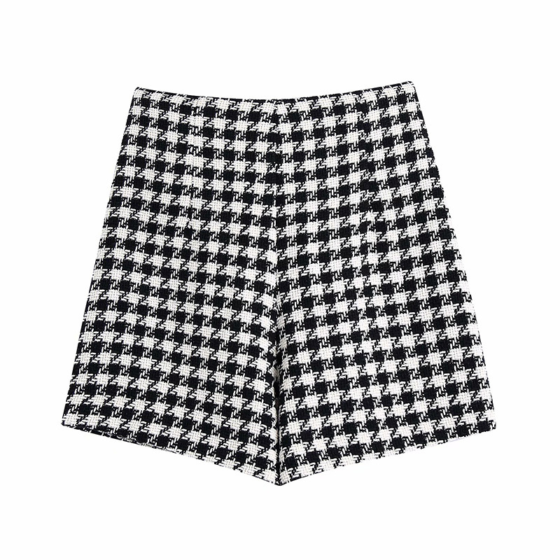 Fashion Ladies Houndstooth Texture Suit Big Shorts