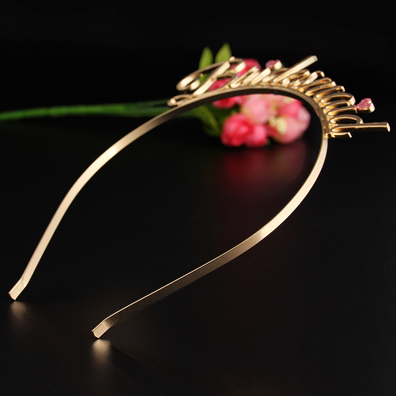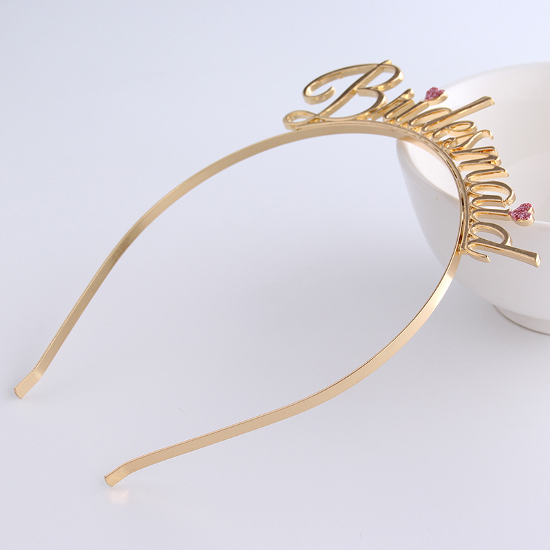 Product information:Material: AlloyStyle: Women'sShape: Letters/Numbers/TextPattern: PlaidColor: bridesmaidPacking list:Headband*1