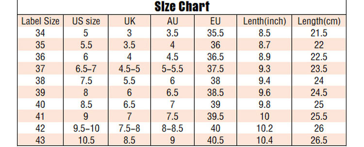 1. Asian sizes are 1 to 2 sizes smaller than European and American people. Choose the larger size if your size between two sizes. Please allow 2-3cm differences due to manual measurement.