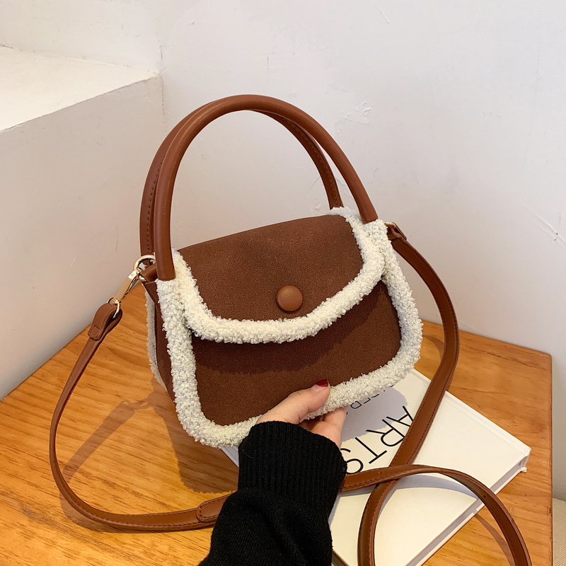 Fashion Lamb Plush Handbag One Shoulder Diagonal Saddle Bag