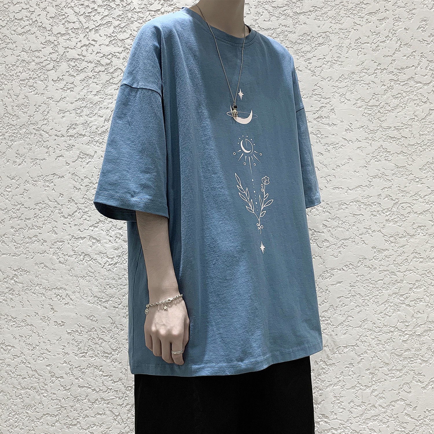 Colour: black, white, gray, blue