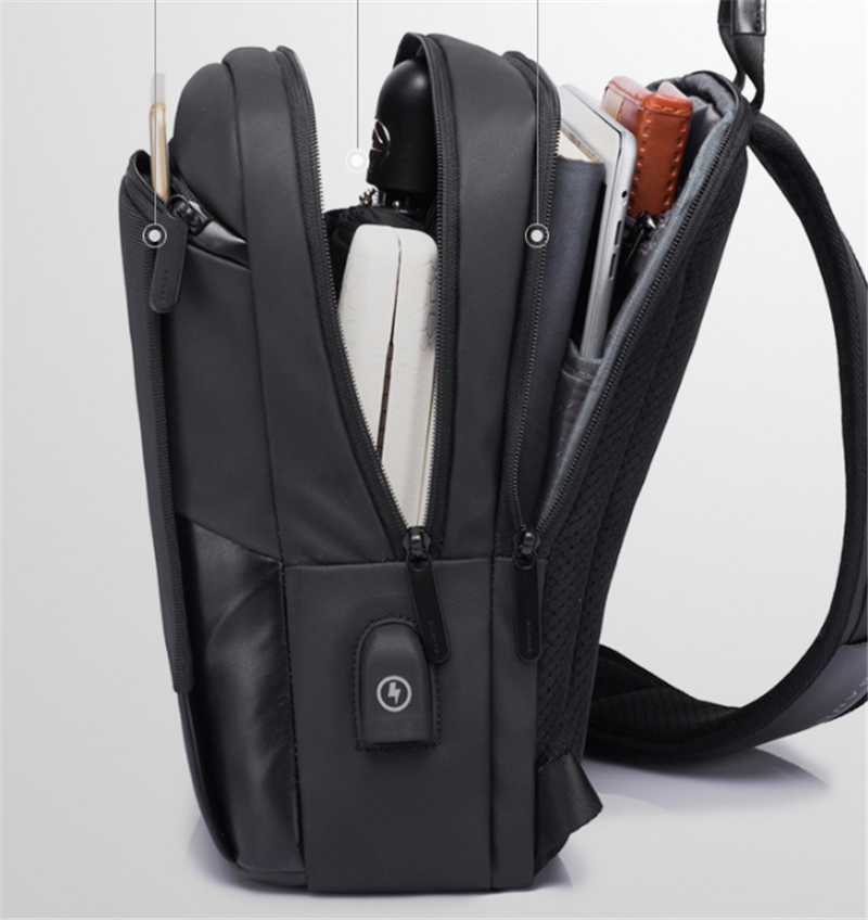 The internal structure of the bag: zipper pocket, mobile phone bag, document bag, sandwich zipper bag