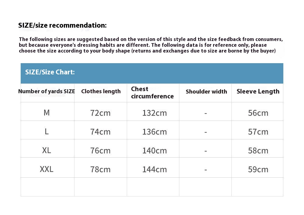 Note: 1. Asian sizes are 1 to 2 sizes smaller than European and American people. Choose the larger size if your size between two sizes. Please allow 2-3cm differences due to manual measurement. 2. Please check the size chart carefully before you buy the item, if you don't know how to choose size, please contact our customer service. 3.As you know, the different computers display colors differently, the color of the actual item may vary slightly from the following images.