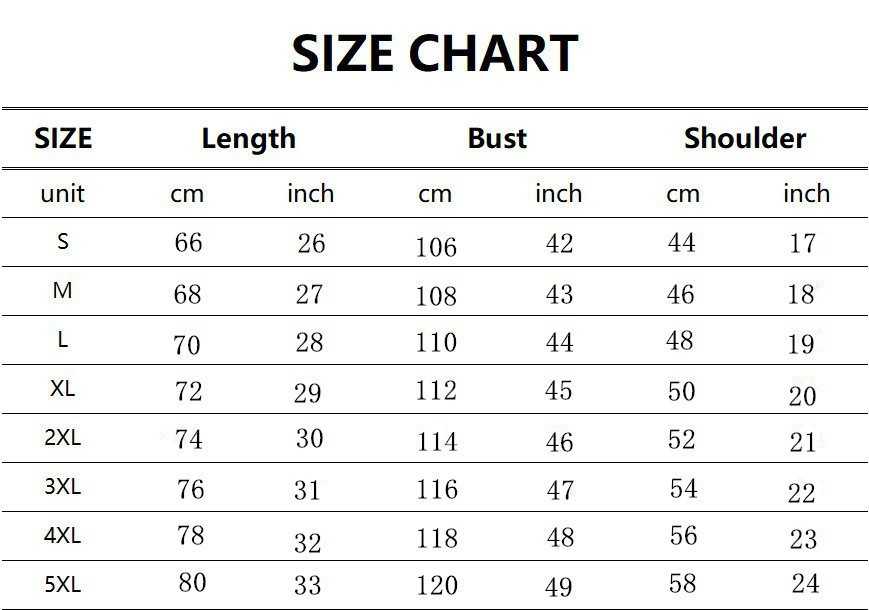 Size: S/M/L/XL/XXL/3XL/4XL/5XL