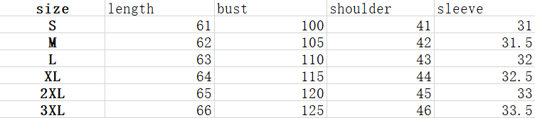 Size: S/M/L/XL/XXL/3XL