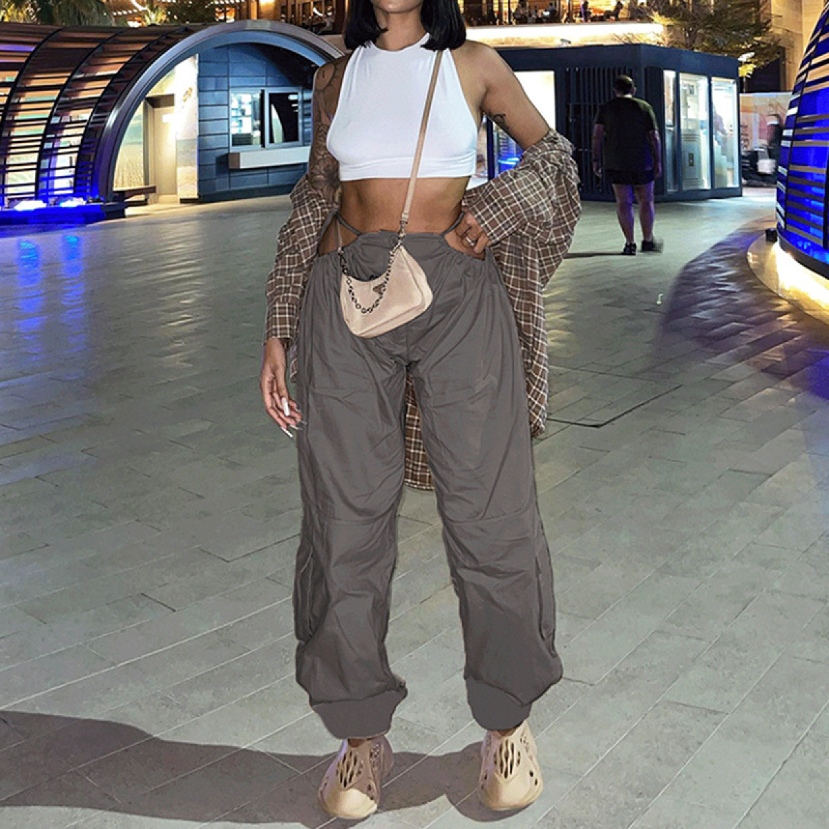 Features: low waist, drawcord