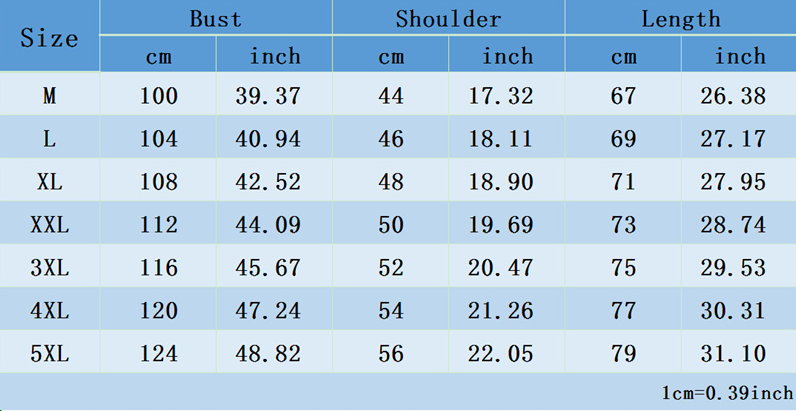 Size: M, L, XL, 2XL, 3XL, 4XL, 5XL, 6XL, 7XL, 8XL