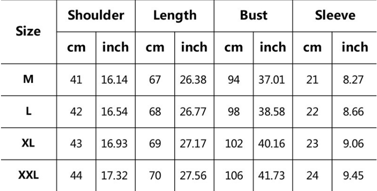 Note: 1. Asian sizes are 1 to 2 sizes smaller than European and American people. Choose the larger size if your size between two sizes. Please allow 2-3cm differences due to manual measurement. 2. Please check the size chart carefully before you buy the item, if you don't know how to choose size, please contact our customer service. 3.As you know, the different computers display colors differently, the color of the actual item may vary slightly from the following images.