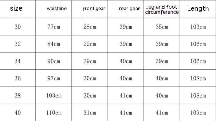 Size: 30, 32, 34, 36, 38, 40