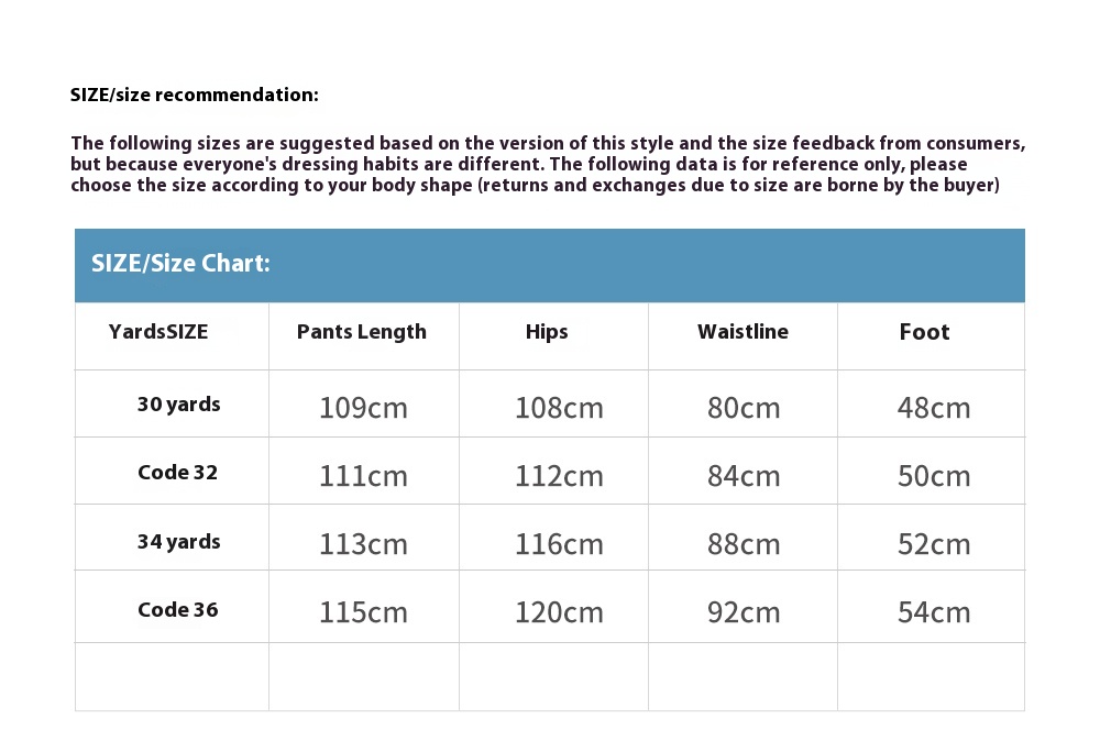 Size: 30, 32, 34, 36