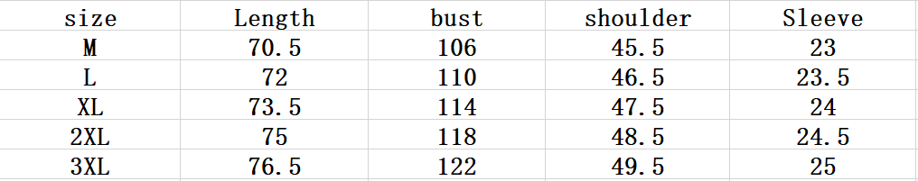 Size: M L XL 2XL 3XL
