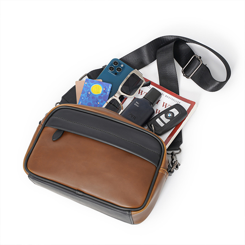The internal structure of the bag: zipper pocket, mobile phone bag, document bag