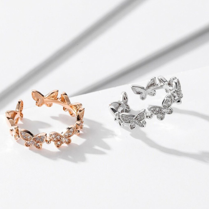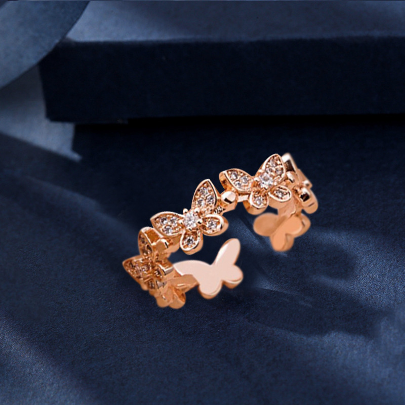 Fashion Micro Diamond Dancing Butterfly Ring