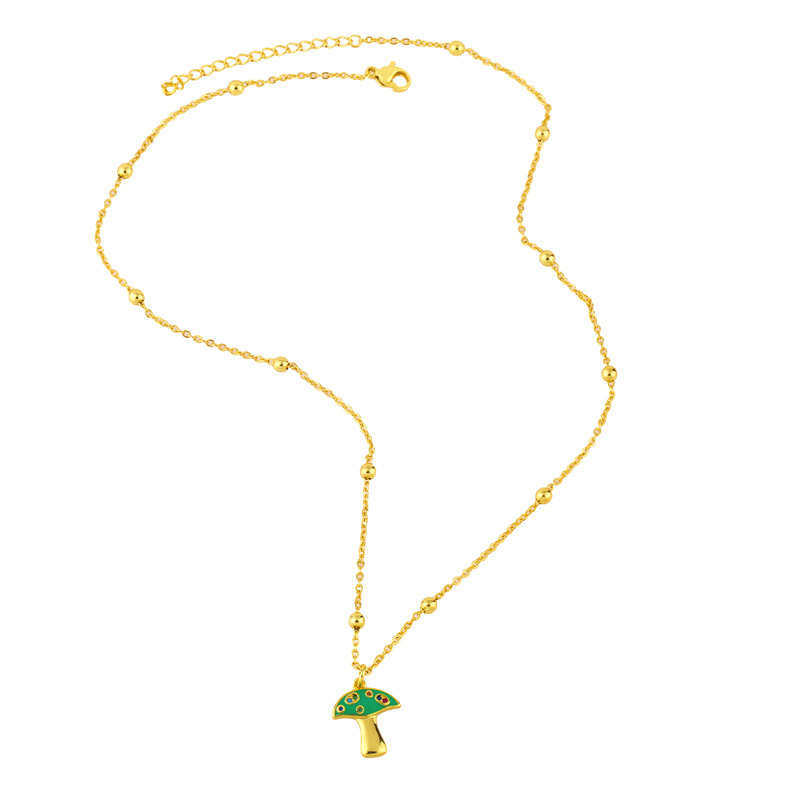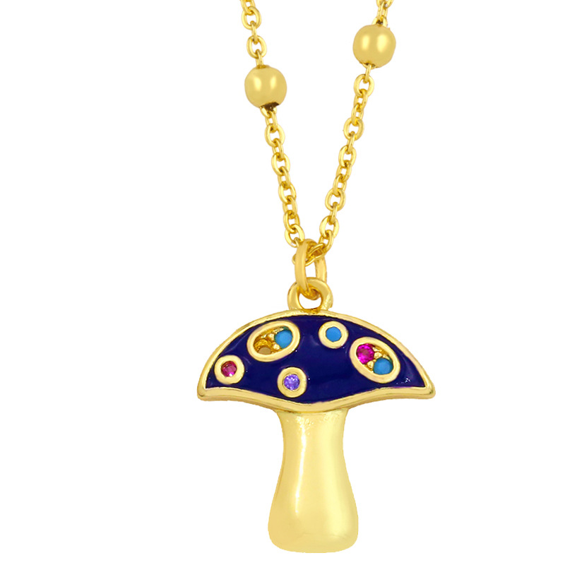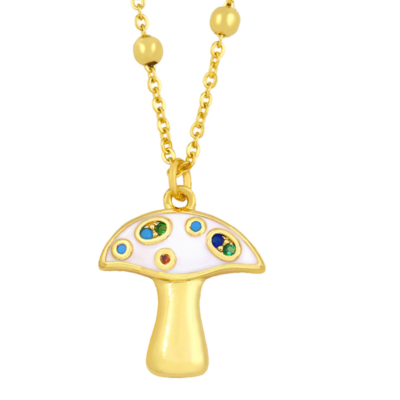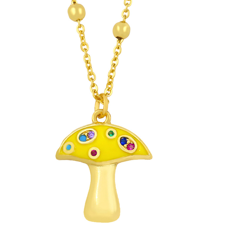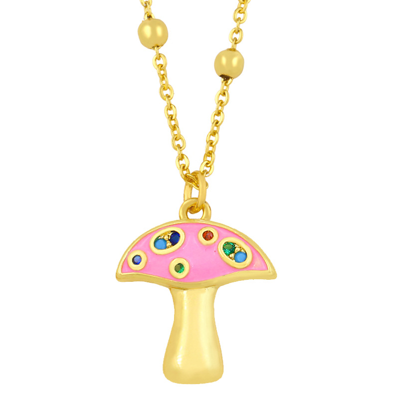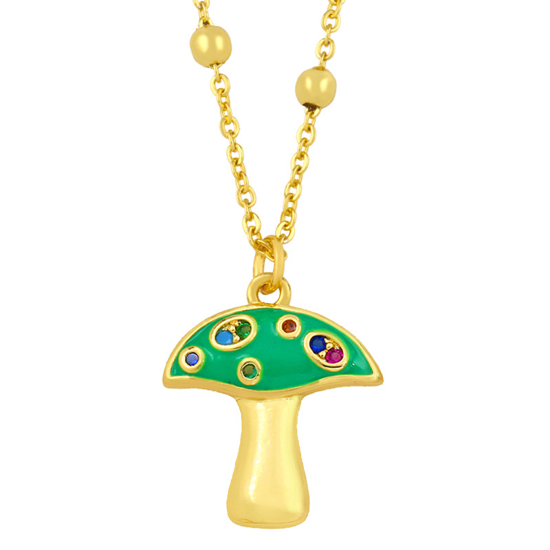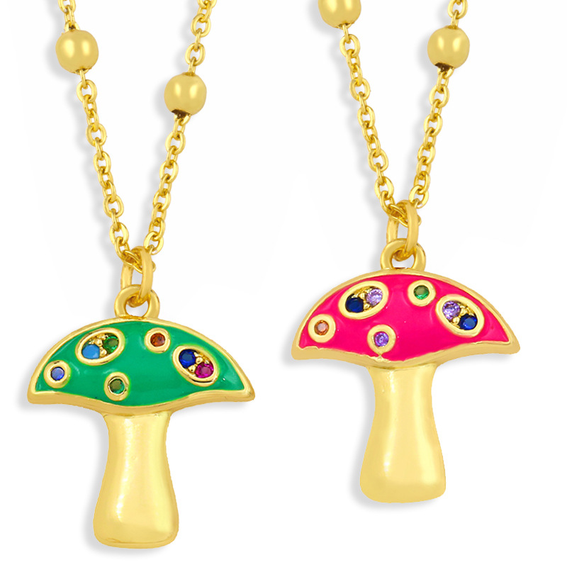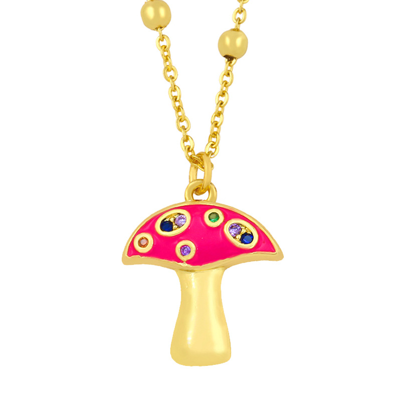 Fashion Mori Female Creative Inlaid Colorful Zircon Drip Oil Mushroom Clavicle Sweater Chain Nky04
