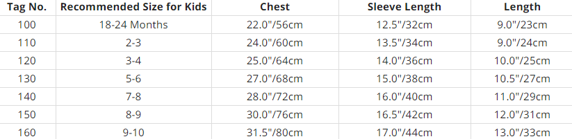 Size: 110 120 130 140 150 160 170 180
