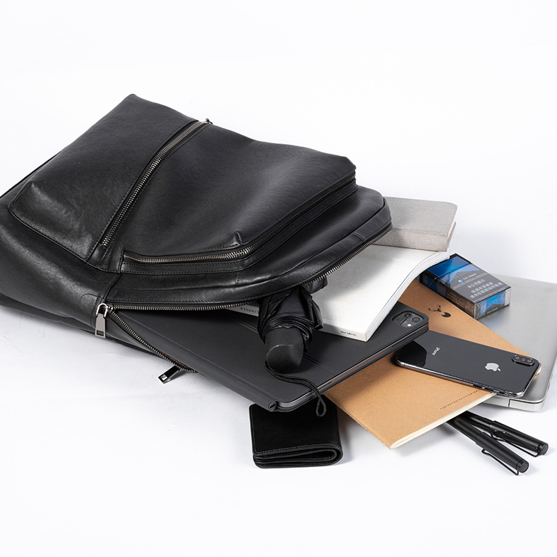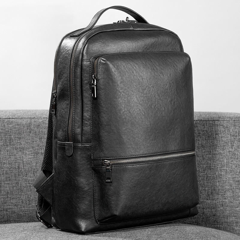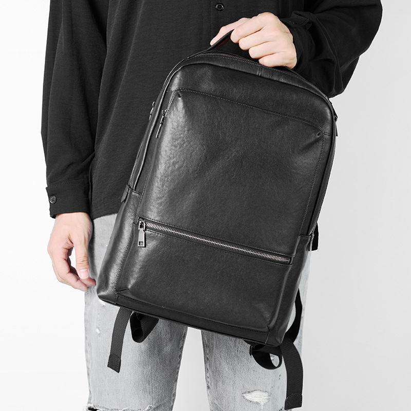 Product information:Opening method: zipperApplicable gender: maleMaterial: LeatherColour: BlackSize: 32*44*12cmPacking list:Men's Backpack*1