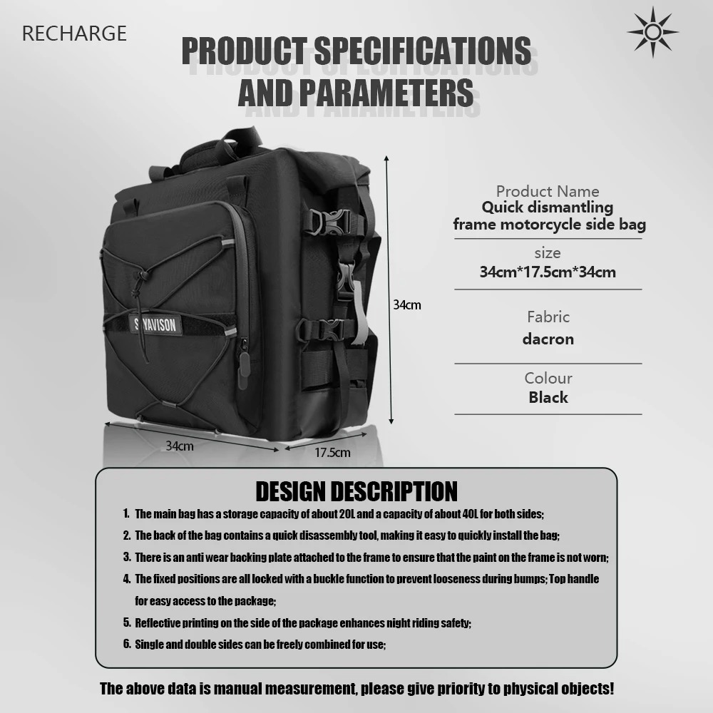 Fashion Personality 20L Motorcycle Motor Saddle Bag