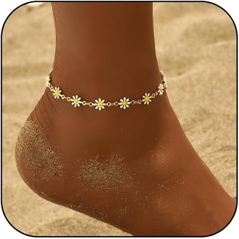 Fashion Personality Anklet White Love Heart Micro Glass Bead Adjustable Foot Ornaments