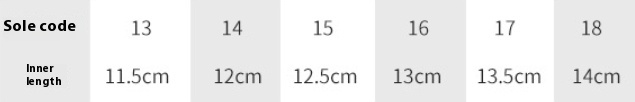 Size: The internal length of [13] code is 11.5cm, the internal length of [14] code is 12cm, and the internal length of [15] code is 12.5cm, and [16] The internal length of the code is 13cm,[17] The internal length of the code is cm,[18] The internal length of the code is 14cm