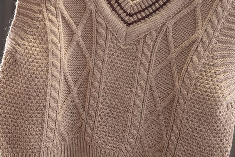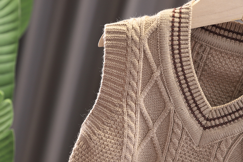 Color: white-new three-piece rhombus sweater, khaki-new three-piece rhombus