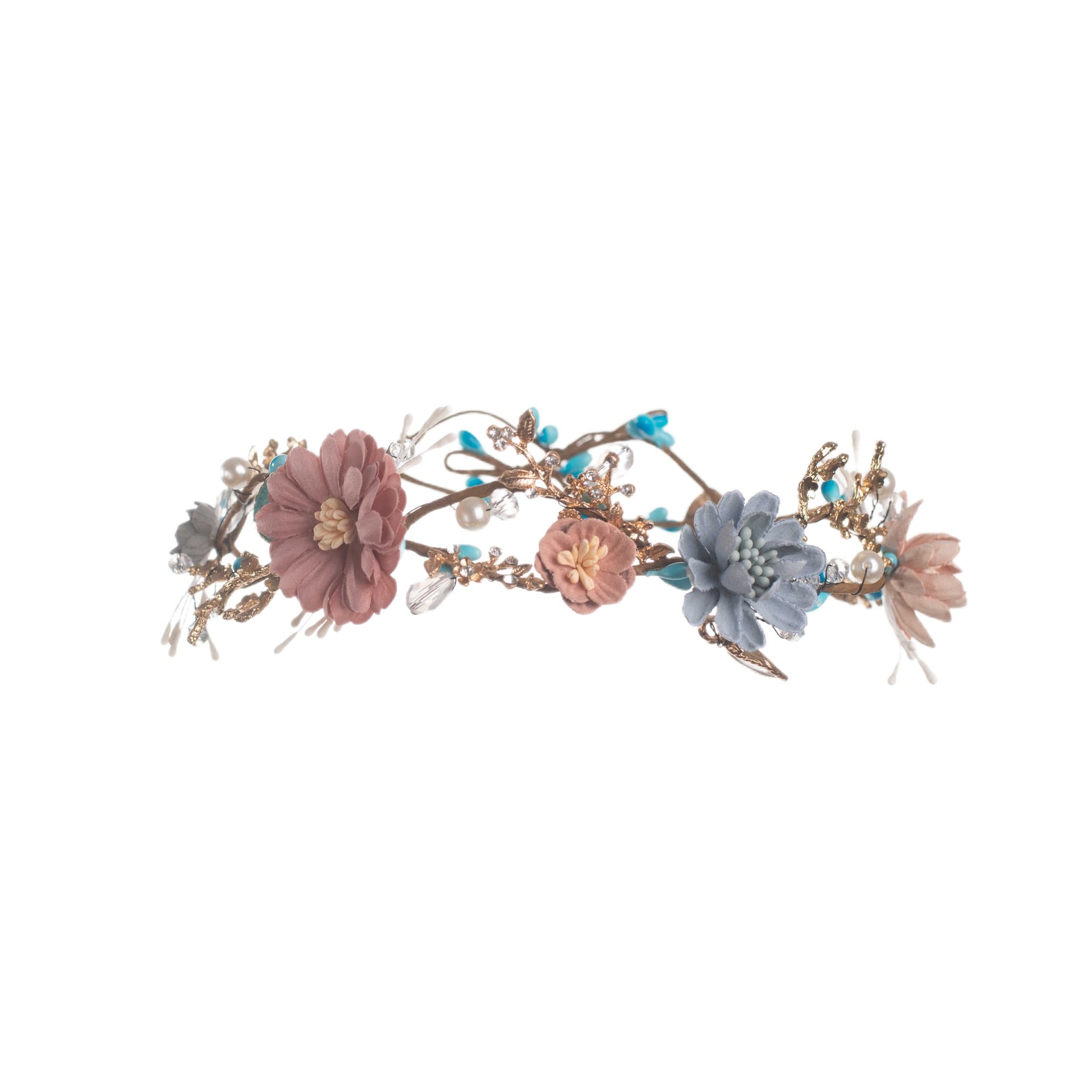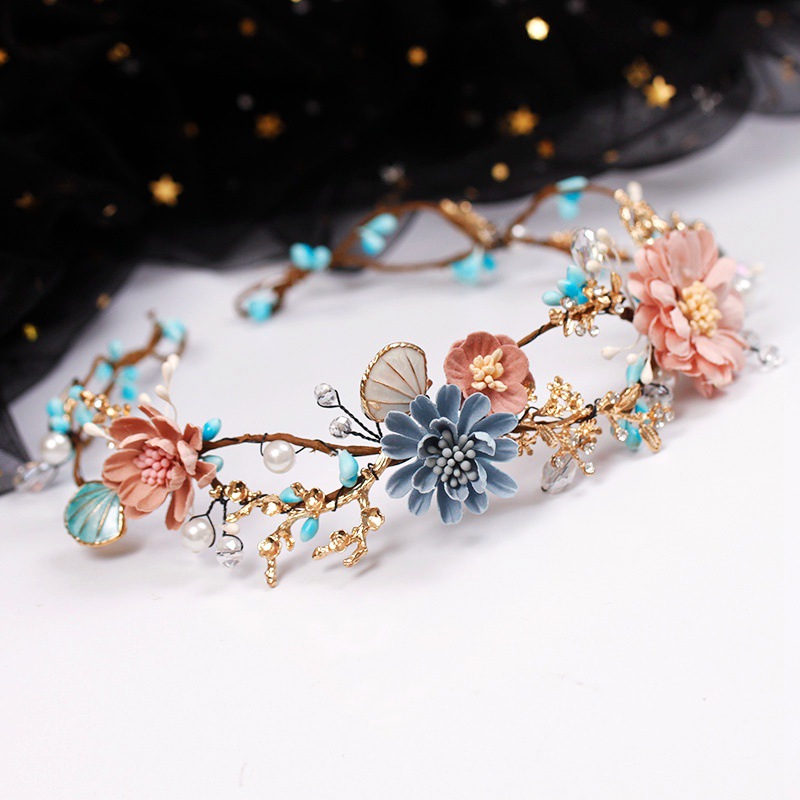 Material: cloth flower, imitation pearl, crystal, iron wire, alloy accessories, etc