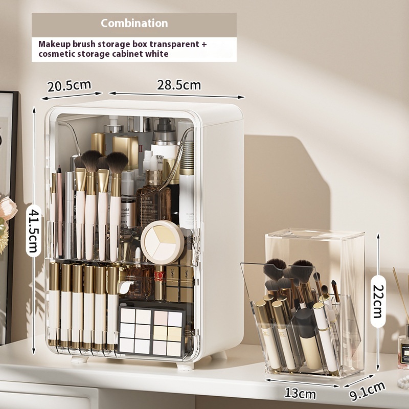 Color: [magnetic opening and closing] 2.0 upgrade makeup product cabinet, [magnetic opening and closing] large capacity makeup product cabinet, makeup brush storage box transparent cosmetics storage cabinet White, makeup brush storage box transparent Ryukyu Lamp Cabinet Milky White